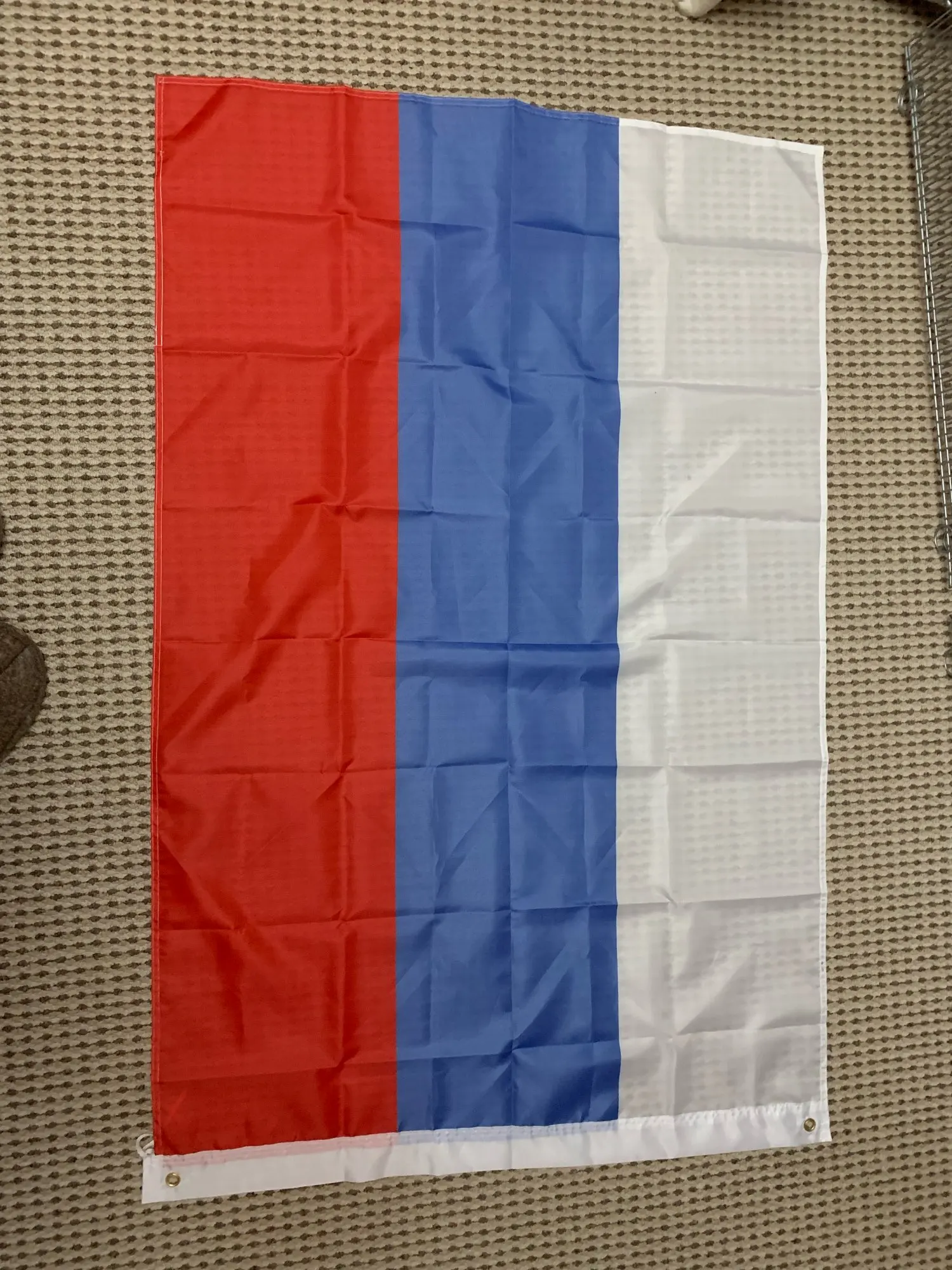 Пришёл большой флаг 150 на 90 см, хорошая ткань, флаг двусторонний по цвету. Нормальные аккуратные швы, качественная фурнитура люверсов. Заказывал с доставкой через СберЛогистику в постамат, пришло ориентировочно за неделю в СПБ.