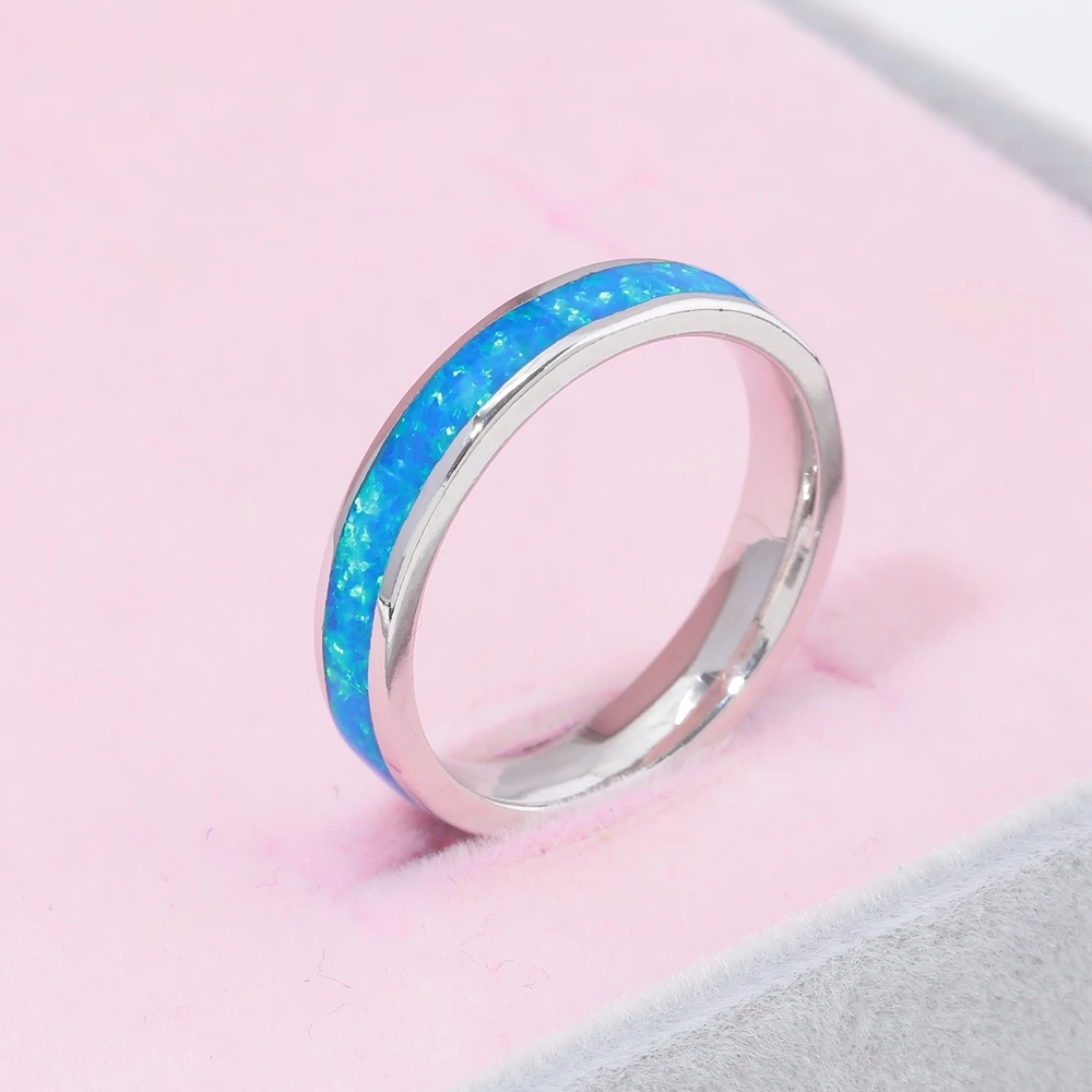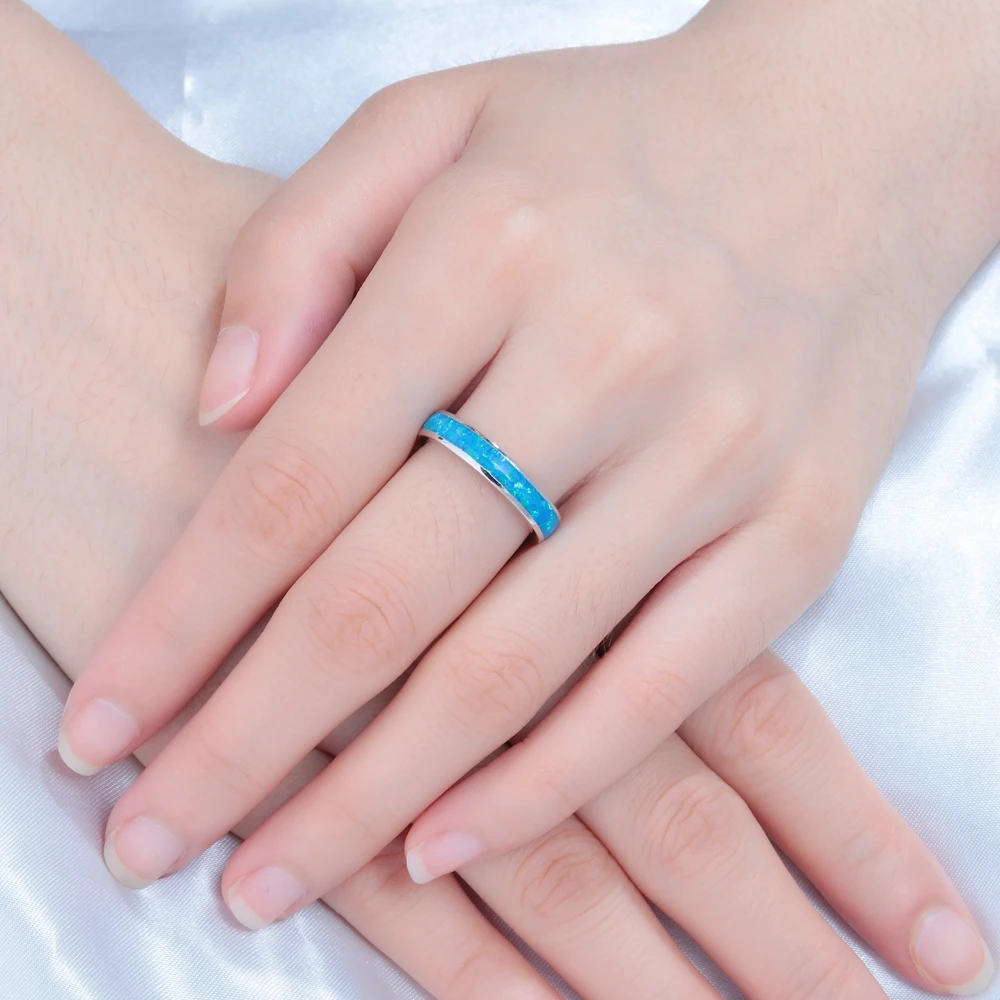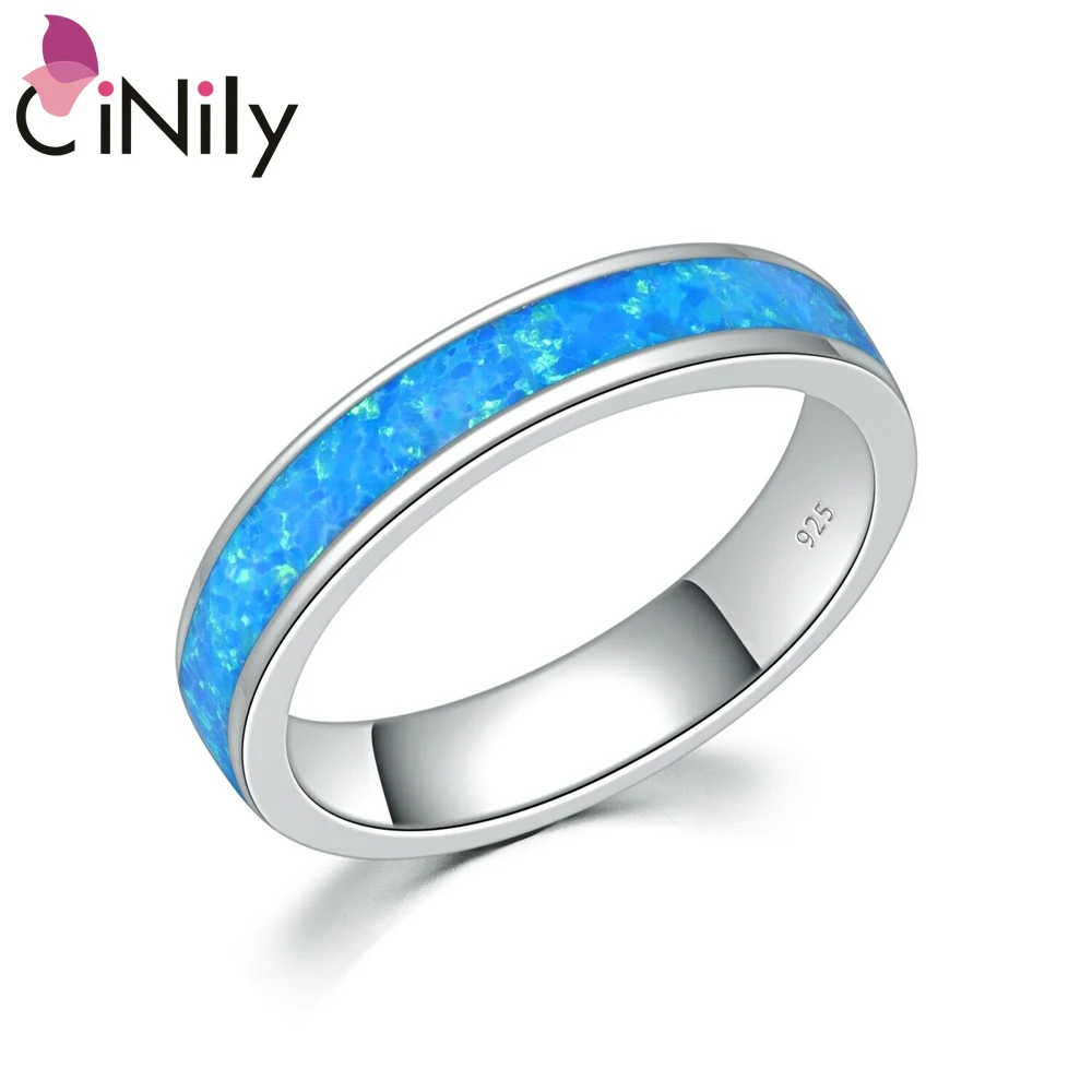 Парные кольца CiNily с голубым огненным опалом, посеребренное кольцо для влюбленных, минималистичное простое модное ювелирное изделие, подарки для женщин и мужчин, размер 7 8