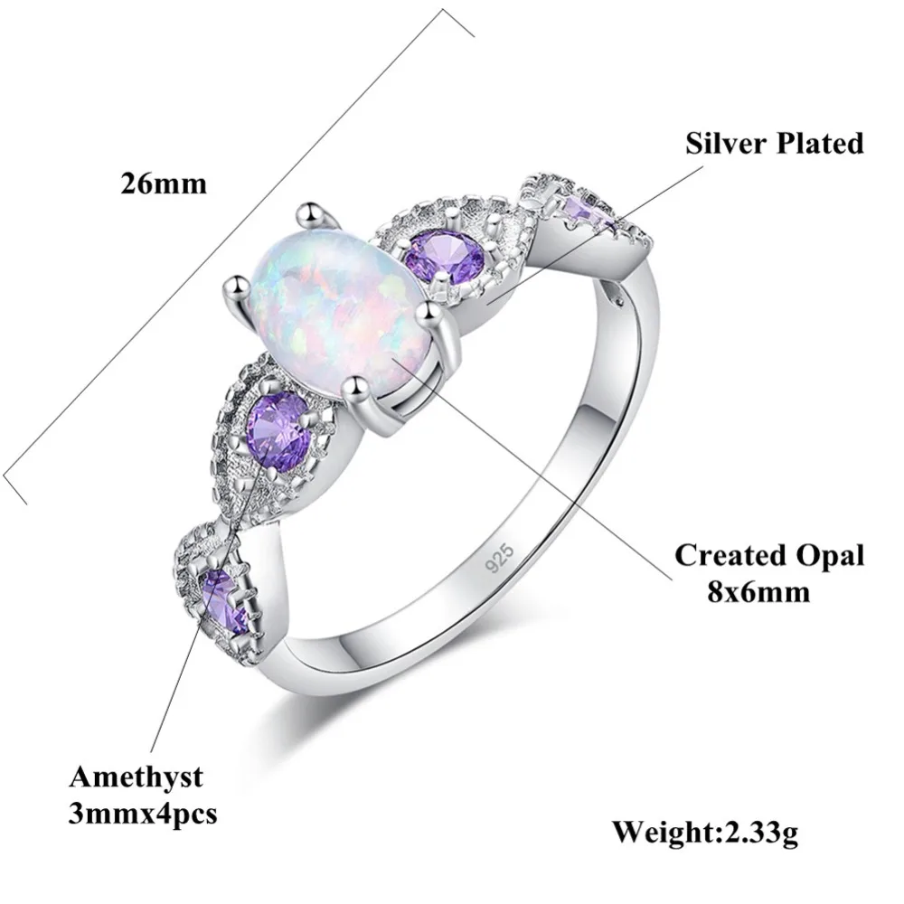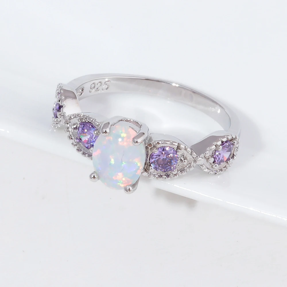 CiNily Белый огненный опал овальные каменные кольца серебряное покрытие Сиреневый Фиолетовый Цирконий Кристалл для помолвки свадьбы полностью ювелирное Бохо женщины