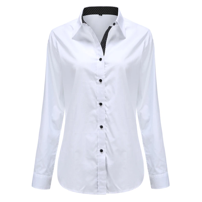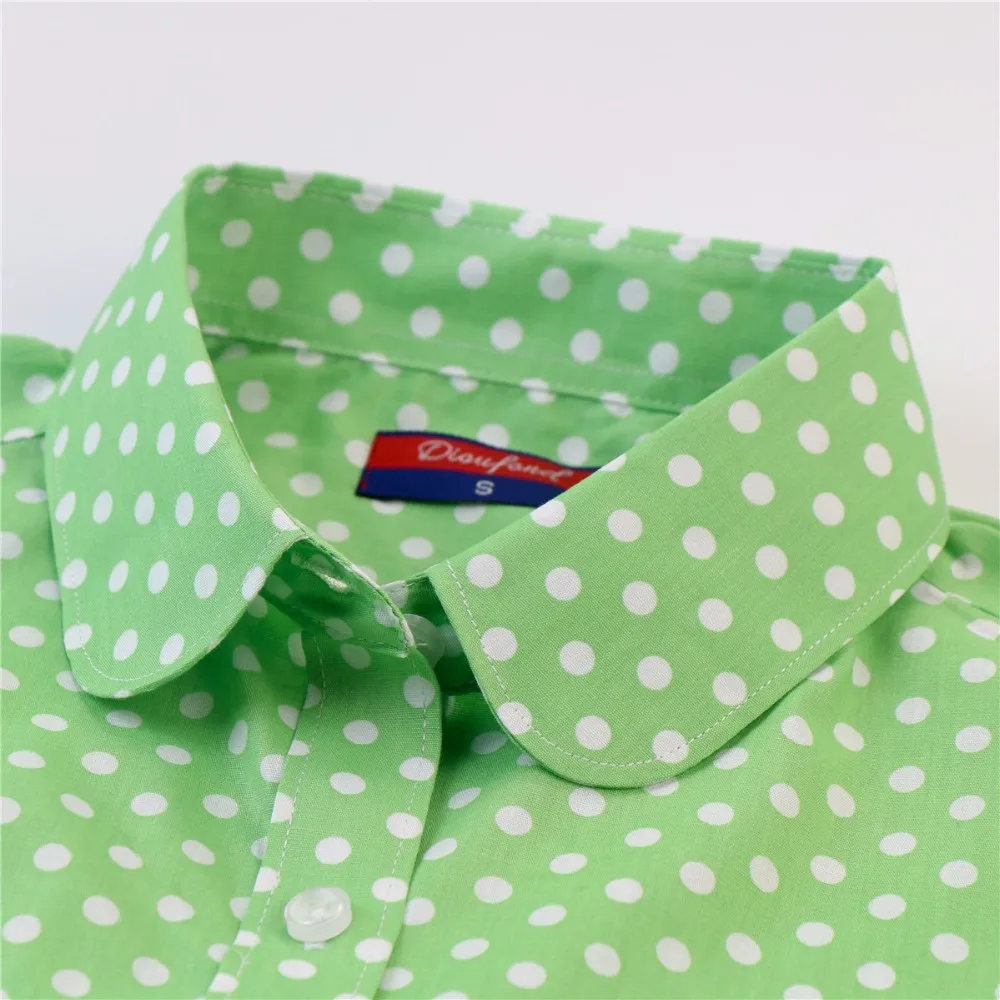 Женские рубашки в горошек Dioufond, хлопковые блузки с длинным рукавом, женские топы, рубашка с воротником, женская блузка, осенняя одежда 5XL