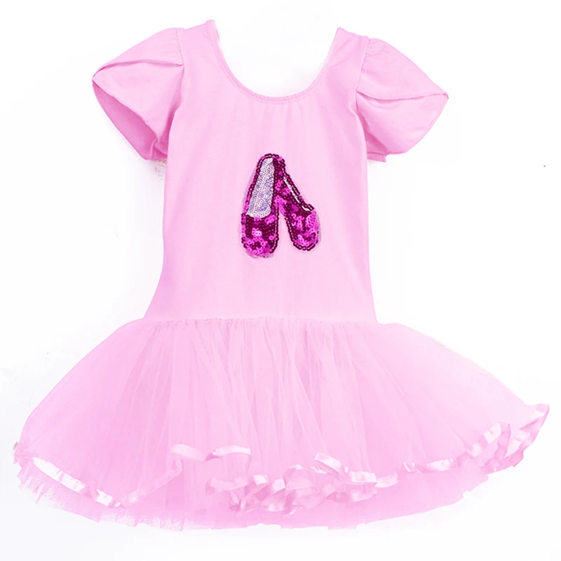 Розовое балетное платье для девочек, детская Одежда для танцев с блестками, детское пышное платье принцессы с коротким рукавом, танцевальные костюмы