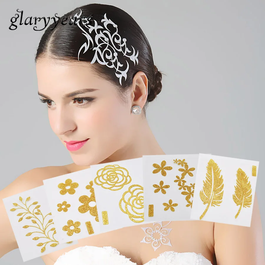1 лист шикарная флеш-Татуировка для волос металлик золотой цветочный узор Татуировка наклейка серии HG женский боди-арт Нетоксичная блестящая Татуировка Новинка