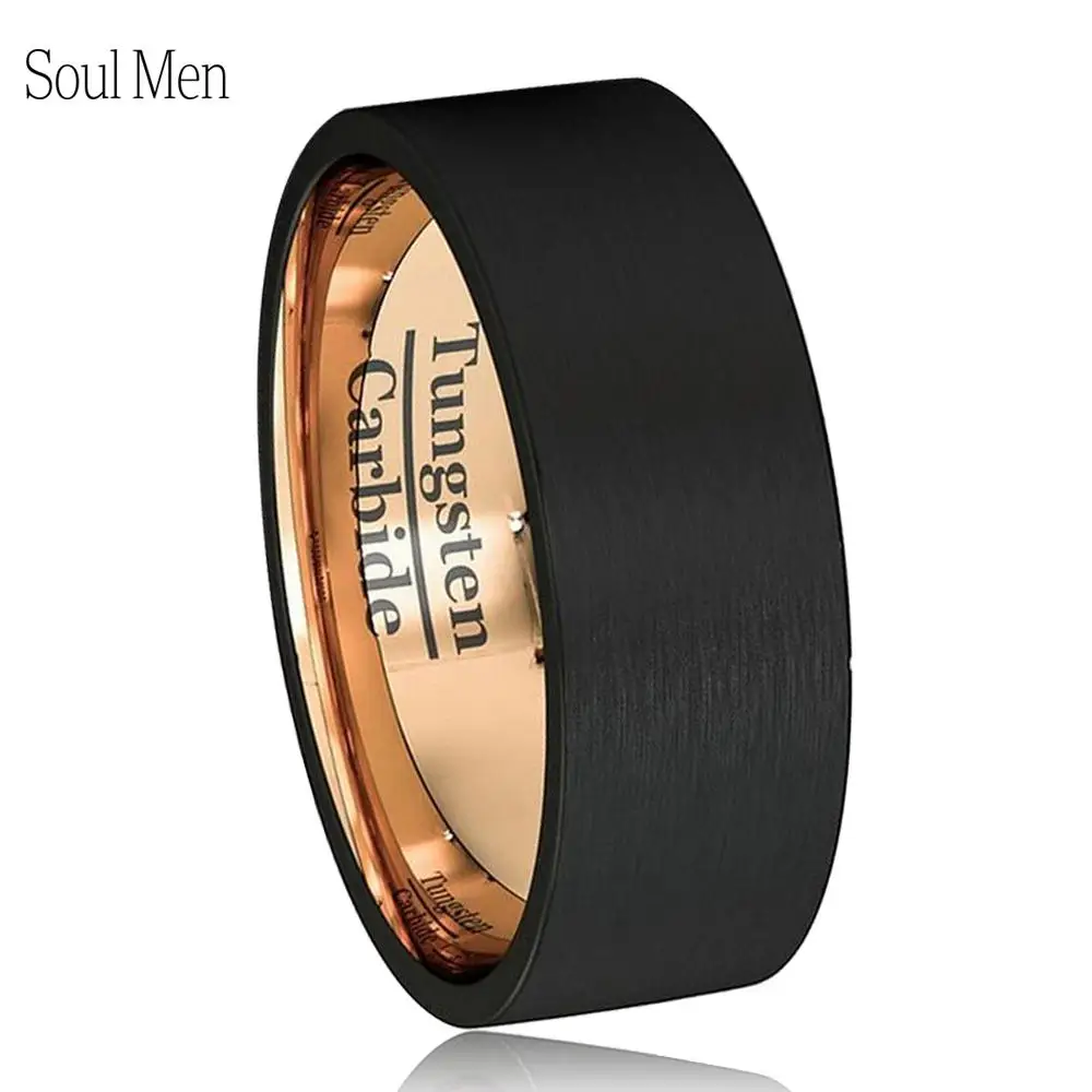 Кольцо из карбида вольфрама для мужчин и женщин, обручальное ювелирное изделие цвета розового золота черного цвета, размеры от 7 до 13, 8 мм