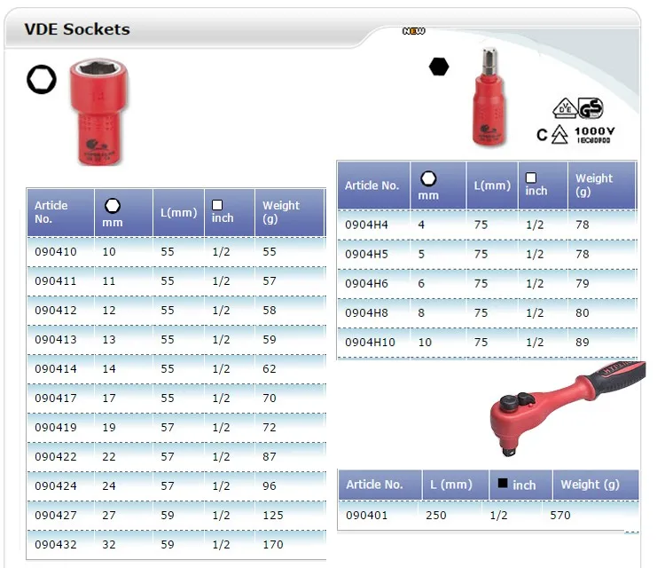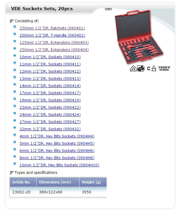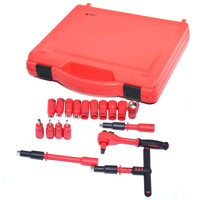 Набор изоляционных инструментов VDE 1000, 20 шт., 12 в, наборы гнезд, Т-образные ручки, шестигранные насадки, устойчивые к высокому напряжению
