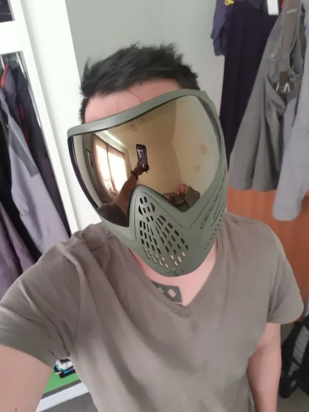 Отличный, более удобный, чем я себе представлял, действительно не тускнеет и имеет большое поле зрения, можно купить с козырьком темным, не сковывает видимость в течение дня, проверено ночью, но в течение дня не очень хорошо, но