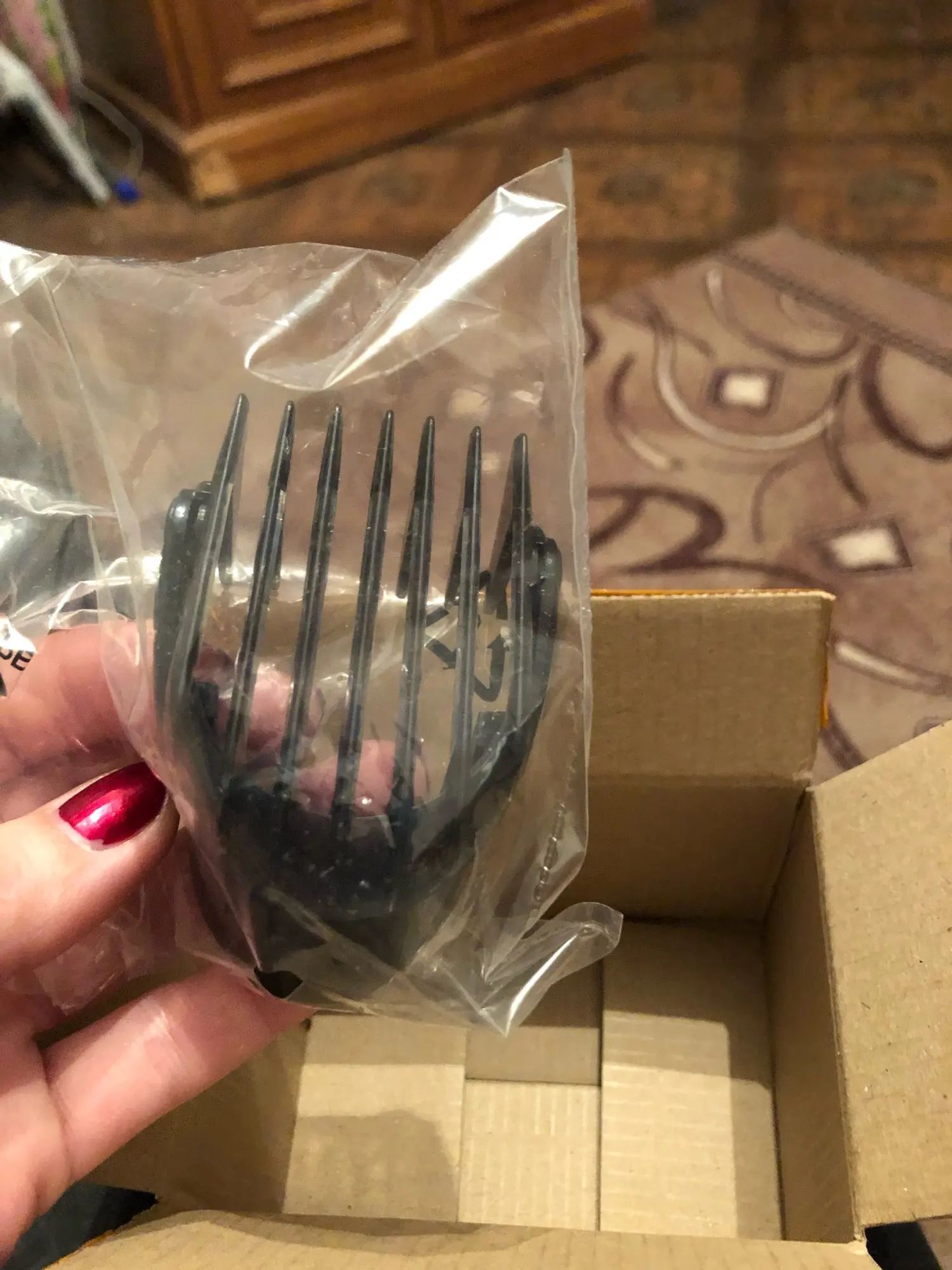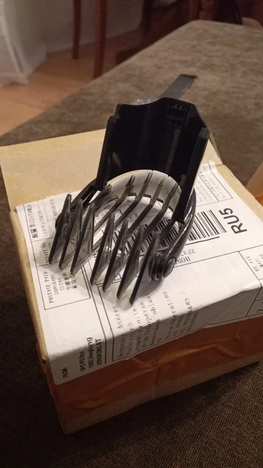 гребёнку для подстригательной машинки поручил спустя месяц. Прислали в картонной коробочке. Все целое . Подошла к машинку Филлипс. Всем доволен! Можно брать.