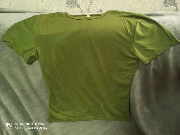 футболочка очень приятная к телу, ну не совсем х/б, не очень длинная, цвет морской волны- красивый. Мужу брала на 48-50 размер, тянется хорошо. Продавцу спасибо, что об'единили посылочки, очень удобно. ставлю пять звезд.