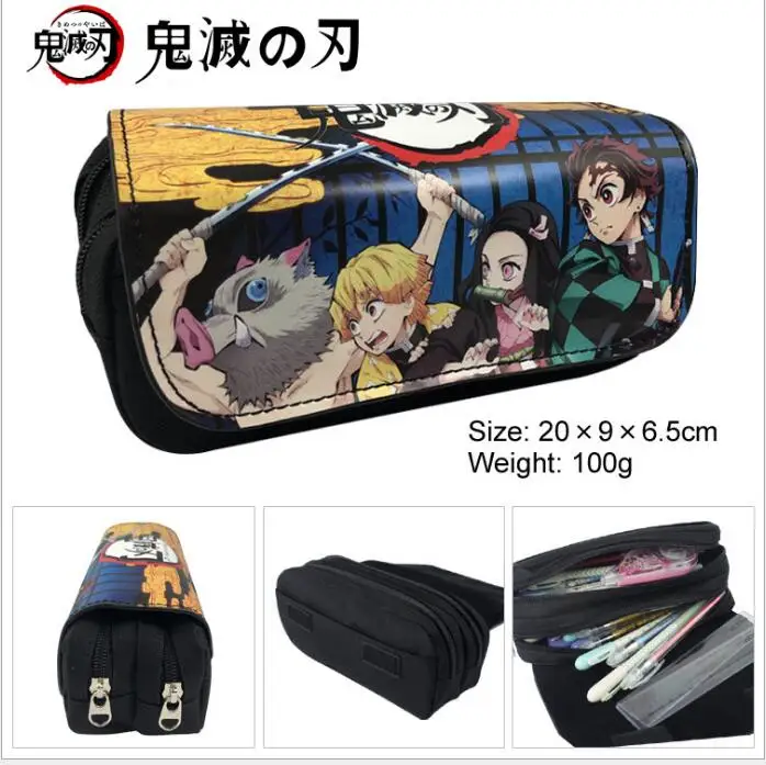 Кожаный чехол для карандашей с мультяшными героями, милый вместительный школьный пенал на двойной молнии для канцелярских принадлежностей, канеты для офиса и школы