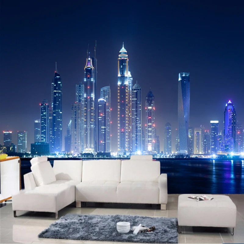 Фотообои на заказ, черно-белые, ночной вид на Нью-Йорк, здание города, кабинет, диван, ТВ, фон, 3D Фотообои
