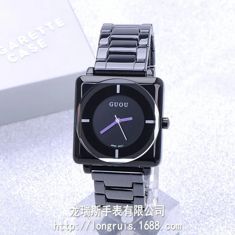 Женские Кварцевые водонепроницаемые часы с квадратным циферблатом и керамическим браслетом