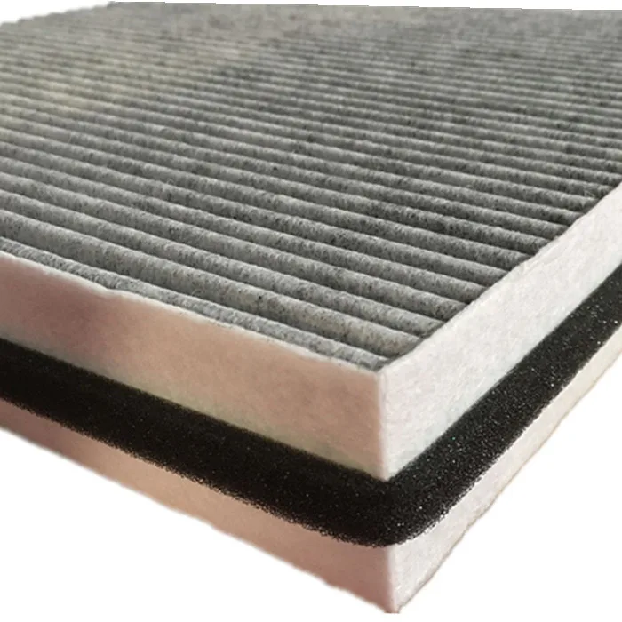 Предварительный фильтр, слой из микрофибры, несущий слой, слой из активированного угля, защитный слой