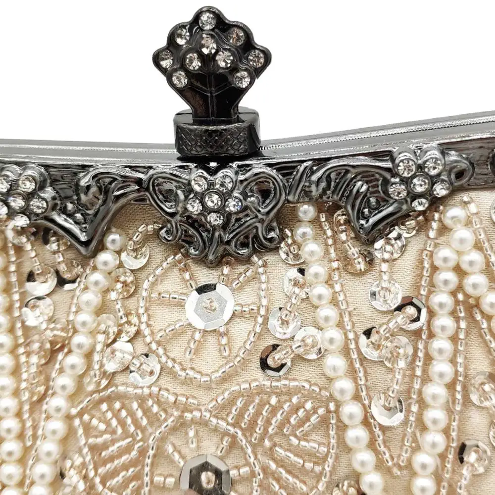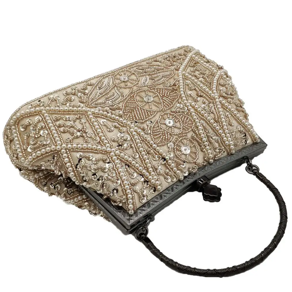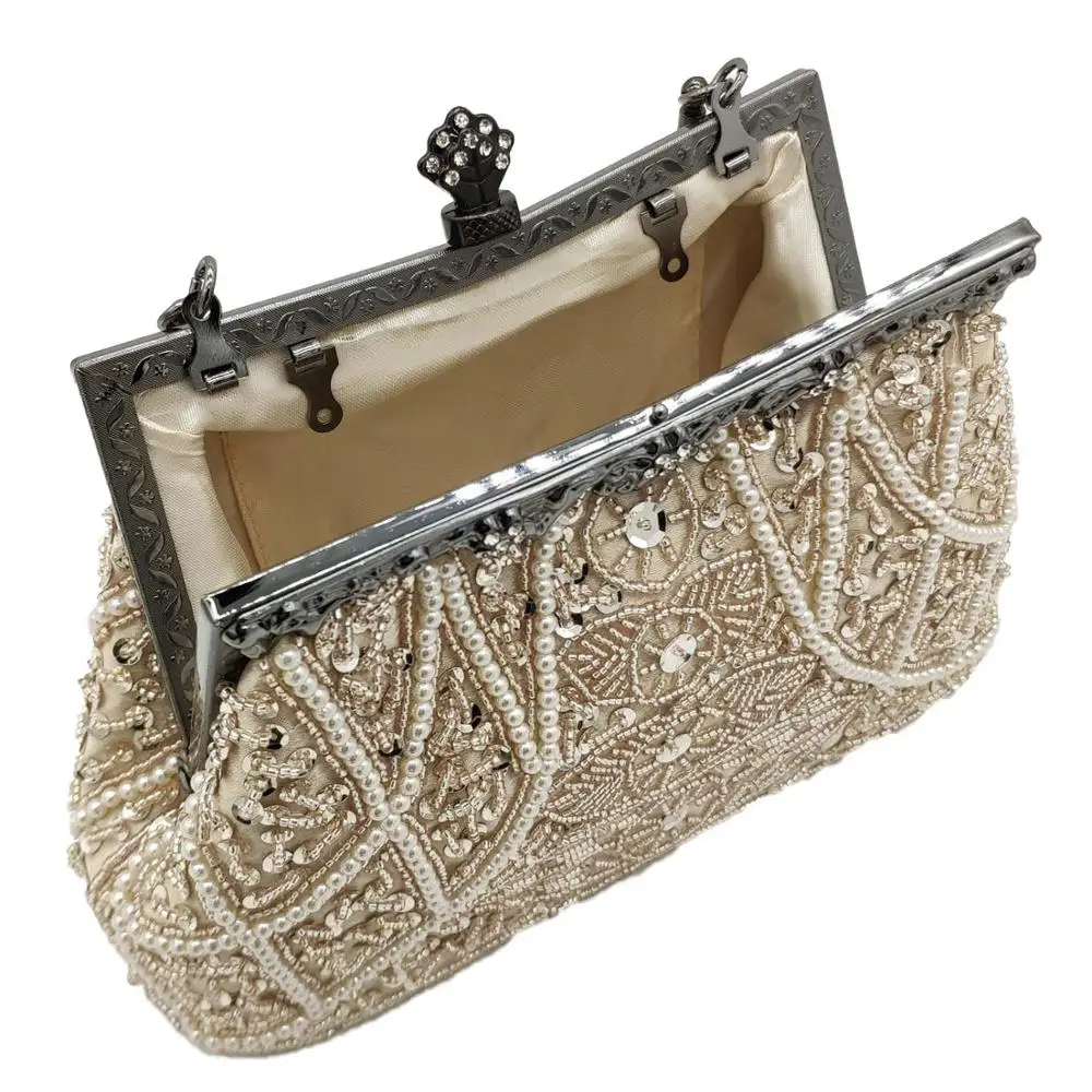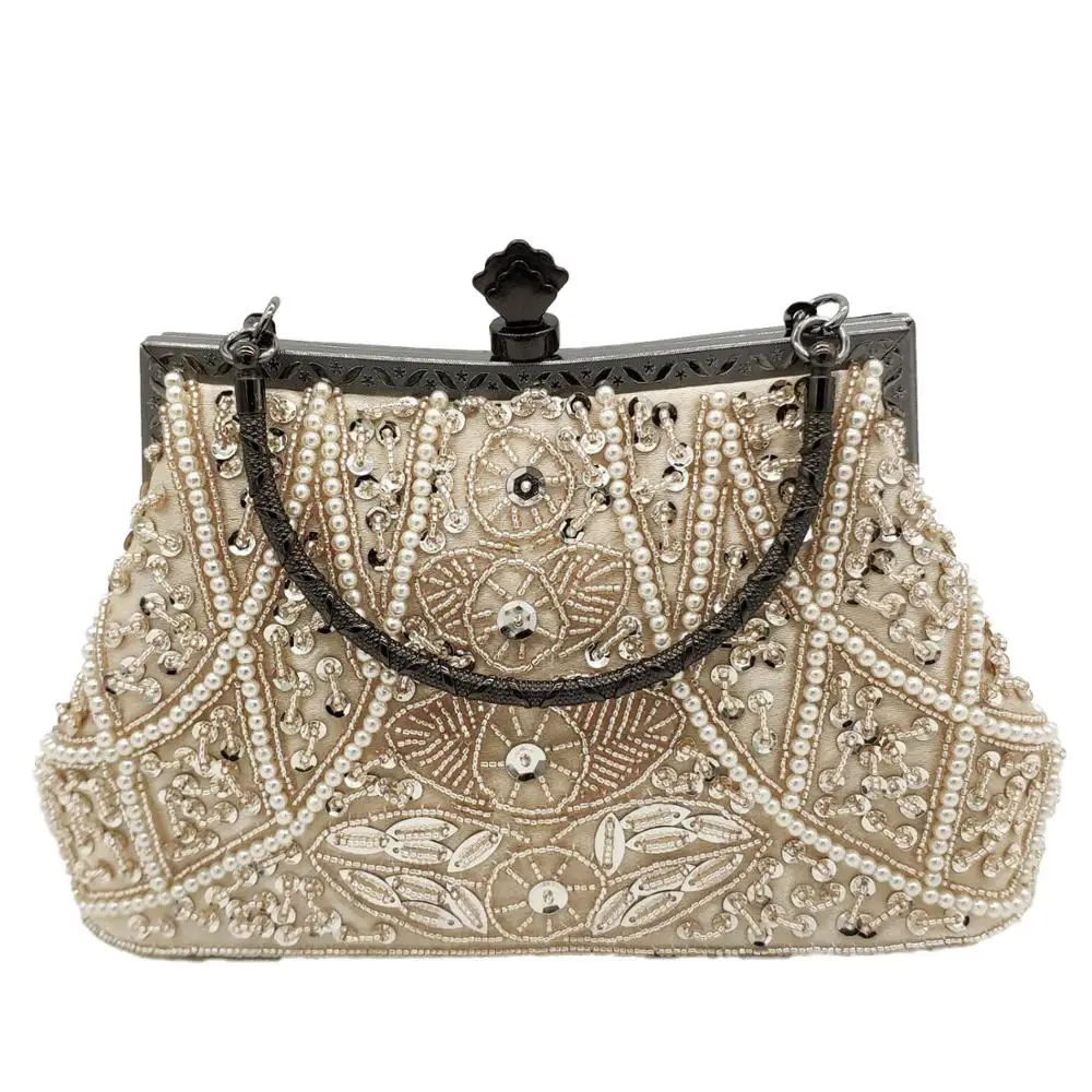 Boutique De FGG винтажные женские вечерние кошельки цвета шампанского в китайском стиле с бисером свадебные сумочки женские коктейльные сумки-клатчи для вечеринок