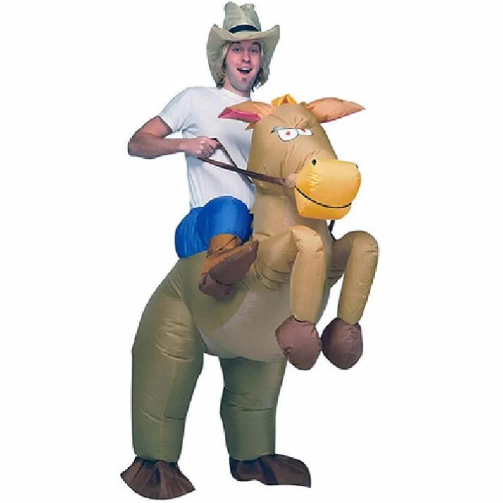 Черная лошадь надувной костюм Ковбой Рождественский костюм косплей костюм для карнавала всадника ковбой костюмы на Хэллоуин для мужчин