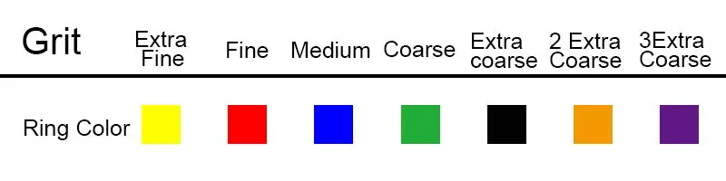 Вот взаимосвязь между каждым шлифовальным зубцом и каждым цветом кольца или пластиковой основы.