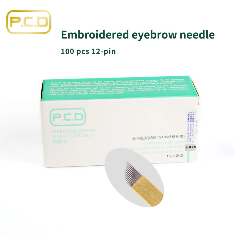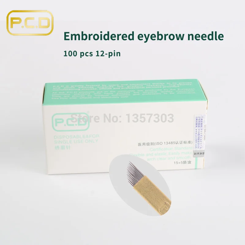 Бесплатная доставка 100 шт PCD 12 зубец плоский Перманентный макияж ручные иглы Лезвия для перманентного макияжа ручная ручка Одиночная упаковка