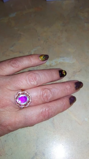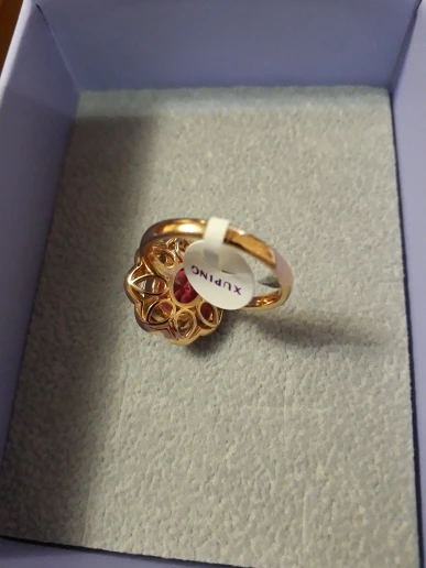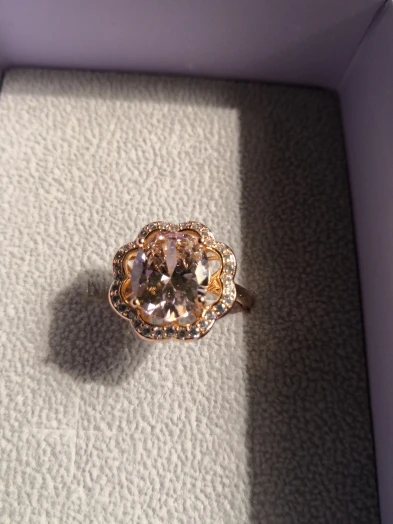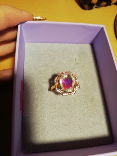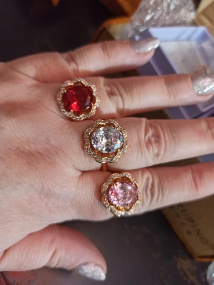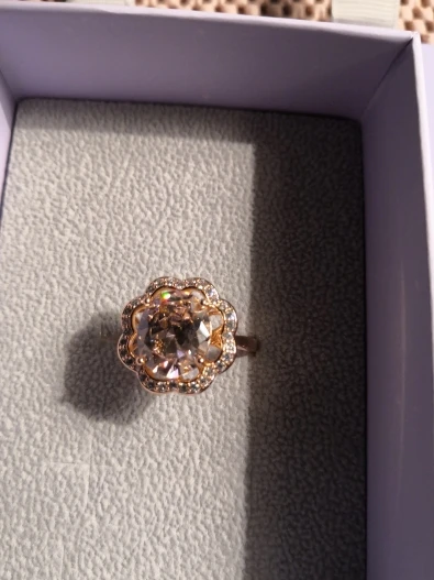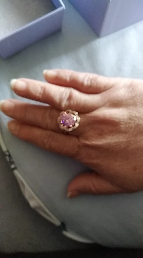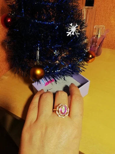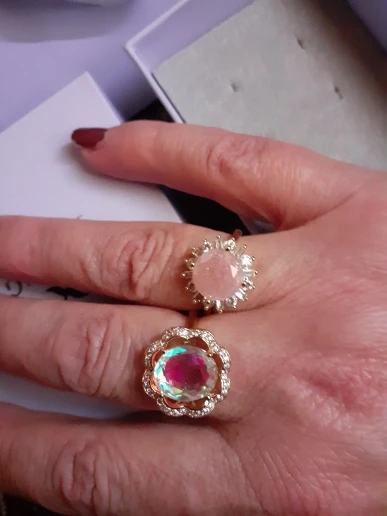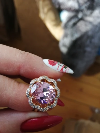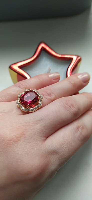 кольцо очень красивая нежная но при этом крупное большое. Я уже заказывала такое в голубом и красном ну розовое блестит больше всех мне так показалось хотя изначально в розовом на отрез не хотела. качество отличное цвет русского золота все камушки на месте коробочках за 5 заказов 3 подарка большое спасибо продавцу.