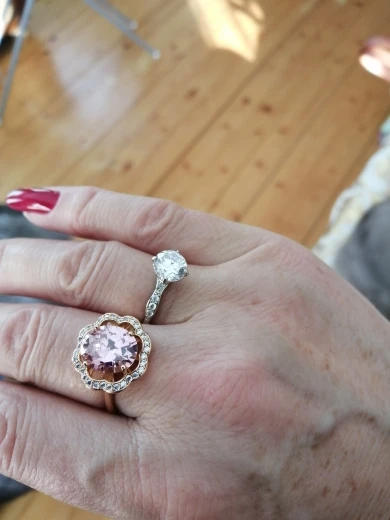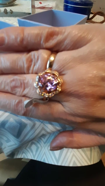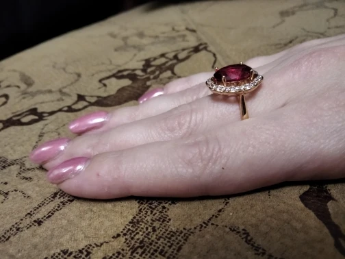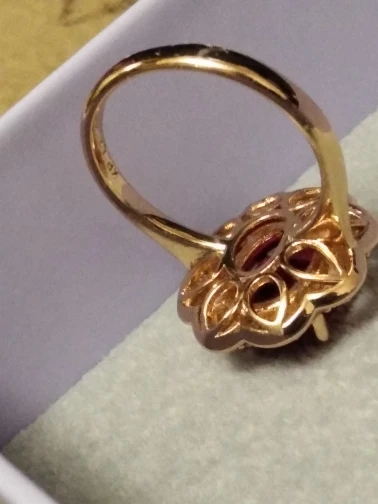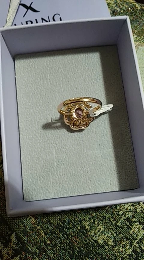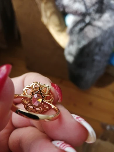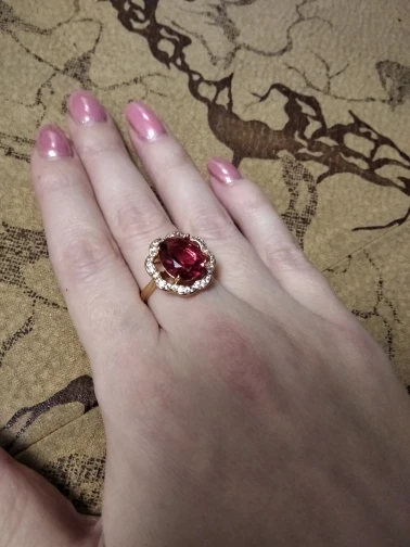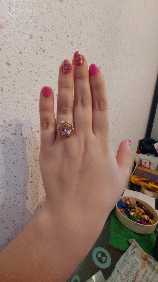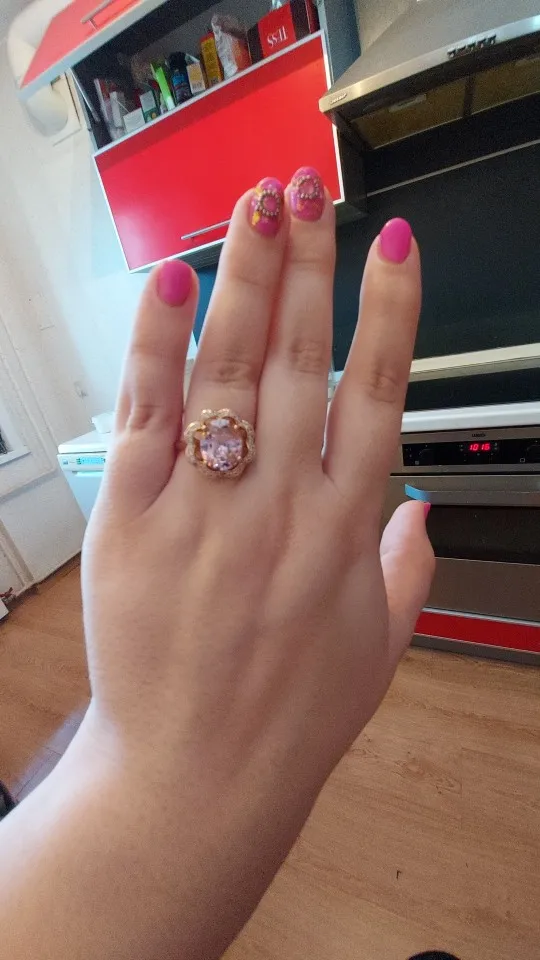 Колечко супер, камень розовый сверкает на солнце изумительно боковые тоже переливаются размер только зря 10 взяла боялась чтоб не мало было на правой руке буду носить похоже на советское золото и цена очень приятная