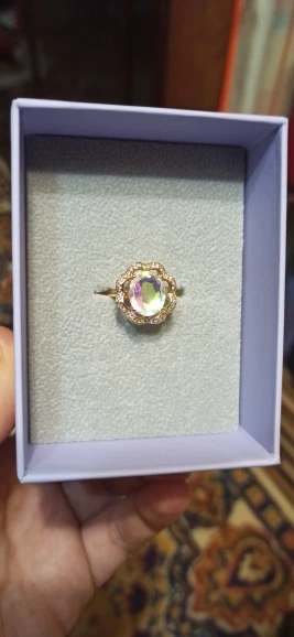 заказ пришёл очень быстро. качество отличное. розовый цвет камня сверкает переливается. кольцо очень красивое. смотрится дорого. в посылке пришло пять заказов. положили подарок серьги с зелёным камнем. в описании кольца заявлено что оно придёт в своей коробочке но продавец не сделал этого. кольцо покупайте не пожалеете. рекомендую товар и продавца. спасибо продавцу.