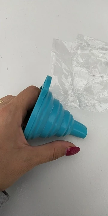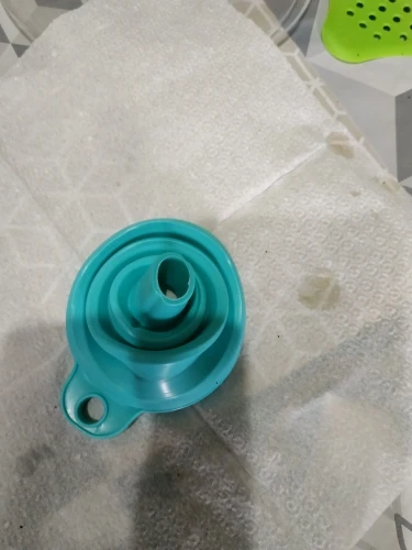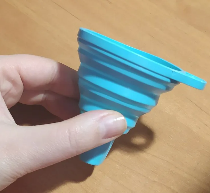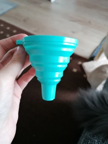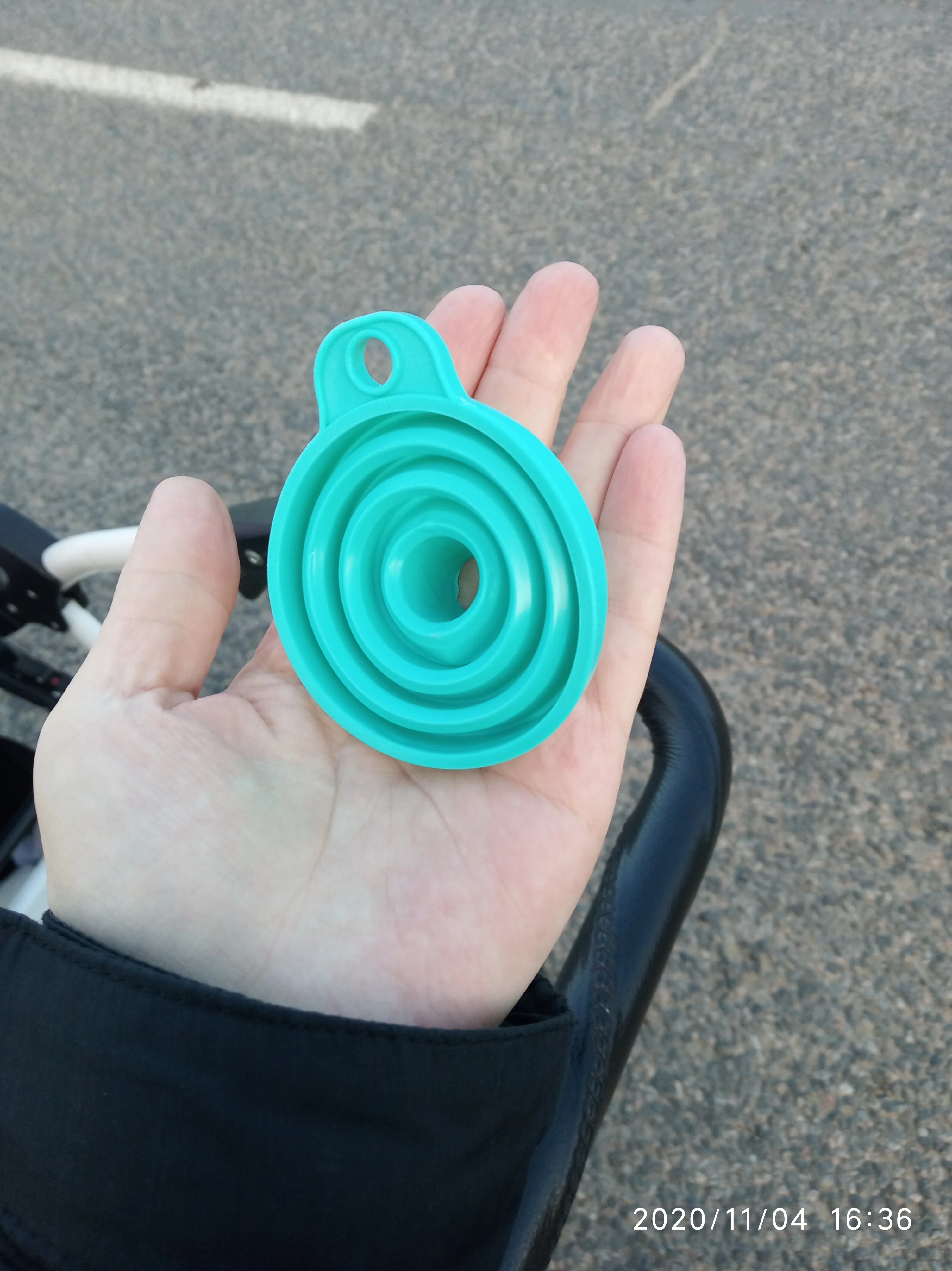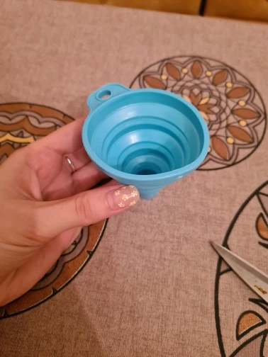 отличная складная воронка. очень симпатичная и компактная. небольшой запах присутствует но я думаю выветрится. покупкой довольна. спасибо продавцу