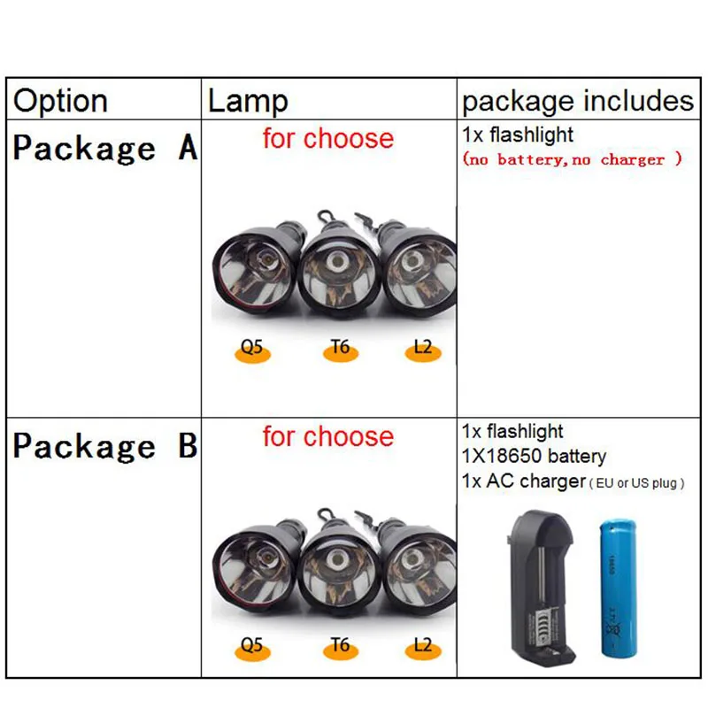 package B1 x flashlight ,1 X AC charger ,1 x 18650 battery