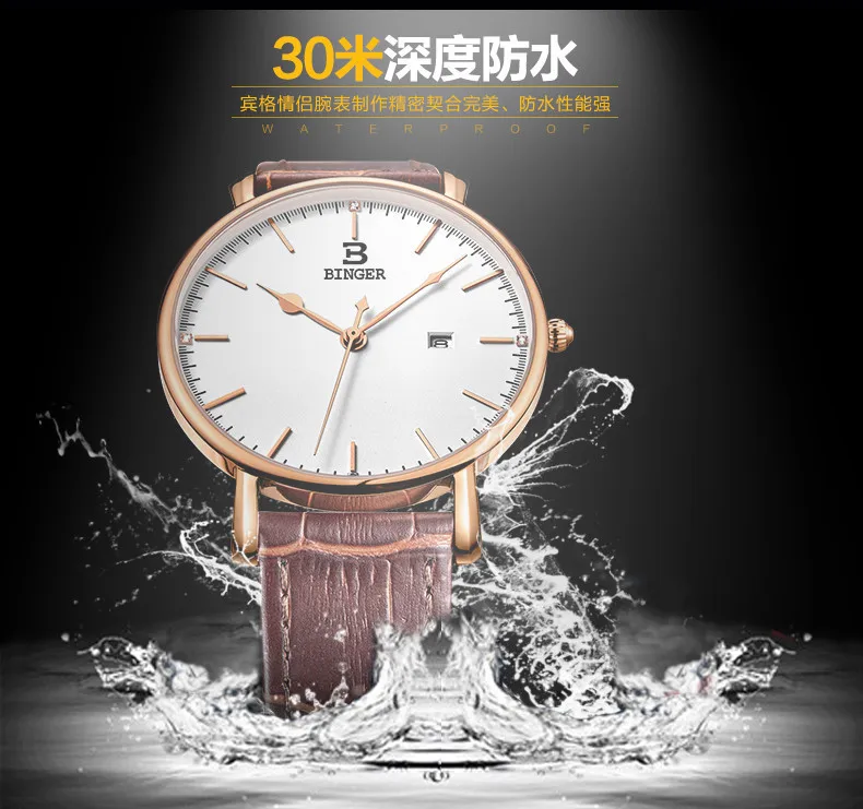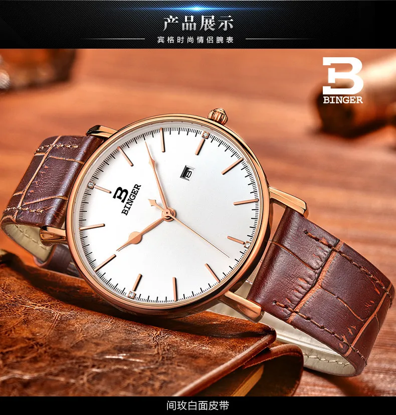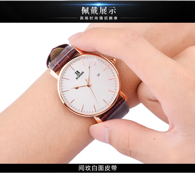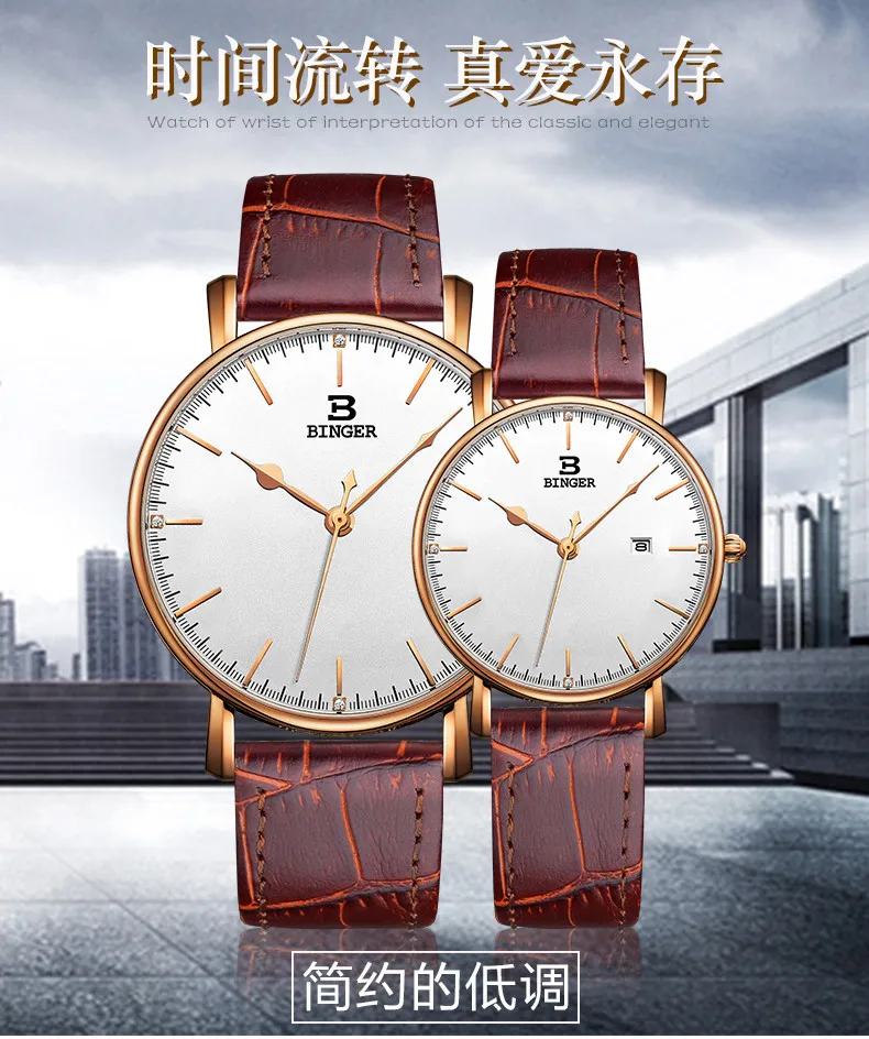Switzerland BINGER женские часы, люксовый бренд, кварцевые часы с кожаным ремешком, ультратонкие женские наручные часы, водонепроницаемые часы с ремешком, часы с ремешком, для женщин, водонепроницаемые, часы с ремешком, для женщин, часы с кожаным ремешком