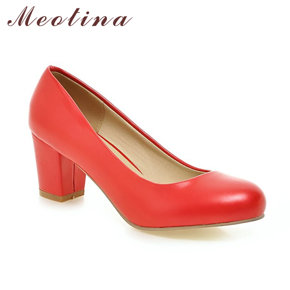 MeotinaЖенская обувь, офисная обувь на высоком каблуке с закругленным носком, женские туфли-лодочки на не сужающимся книзу массивном каблуке, женская обувь, цвета: бежевый, большие размеры 9, 10, 42, 43