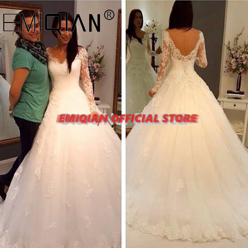 Кружевное свадебное платье, недорогое ТРАПЕЦИЕВИДНОЕ свадебное платье с V-образным вырезом, длинными рукавами, молнией на спине, Тюлевое свадебное платье