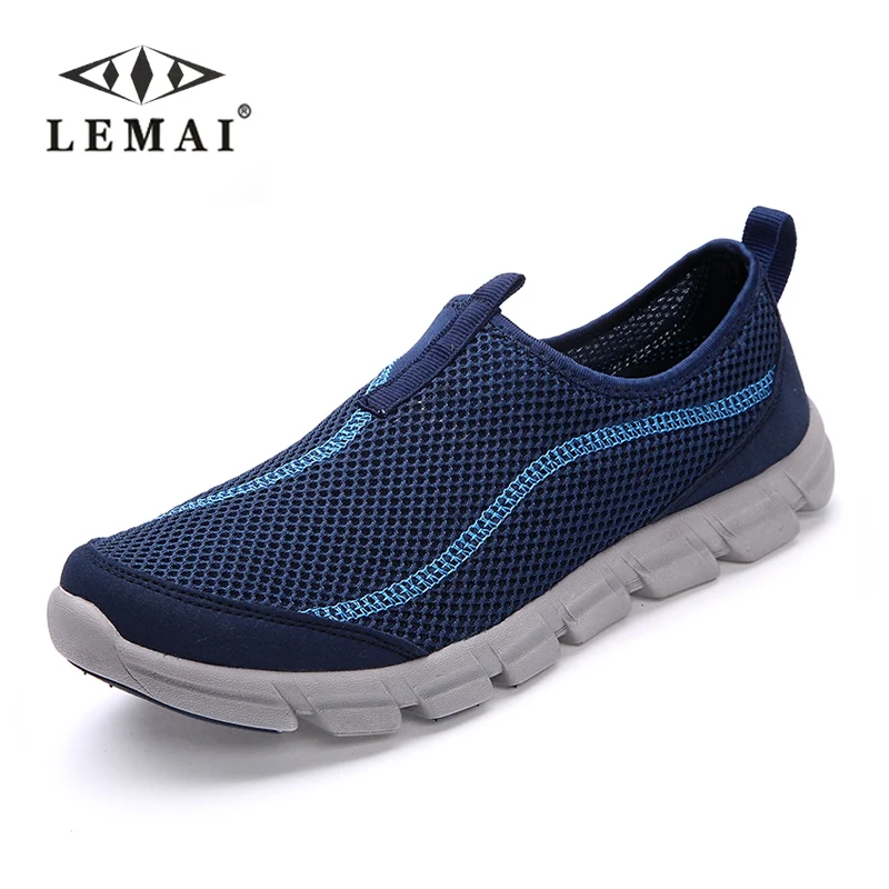 LEMAI2019 г. Новая мужская повседневная обувь Летняя сетчатая обувь для мужчин очень светильник обувь на плоской подошве облегающая обувь больших размеров #36-44
