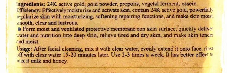 Отбеливающая мягкая маска для лица с золотым порошком, 24 к