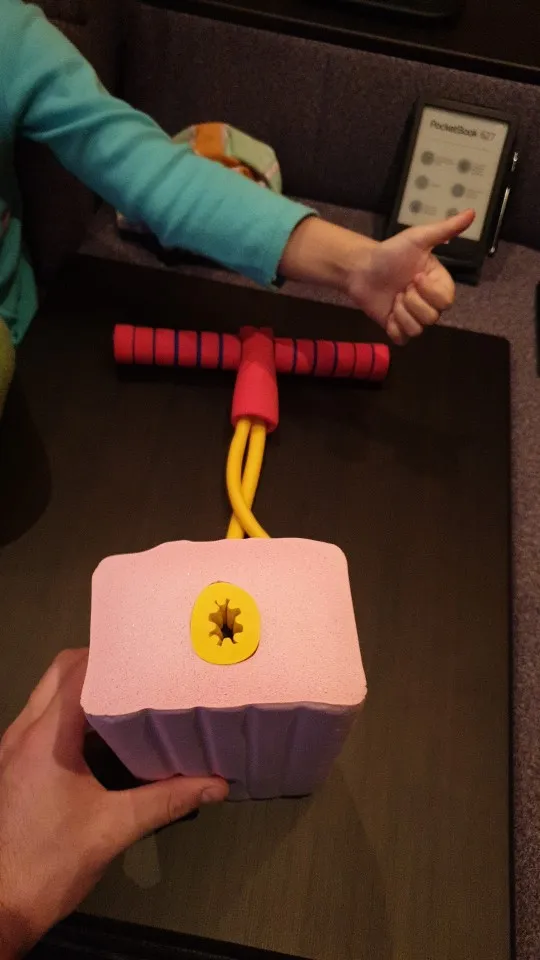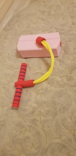шикарная игрушка, подходит и ребенку +3 года и стройному взрослому человеку. Пиешит при прыжке. ручка хорошо тянется. Ребенок не смог сразу научиться прыгать и балансировать, а мама в восторге от игрушки. рекомендую быстро пришло, быстро отправили.