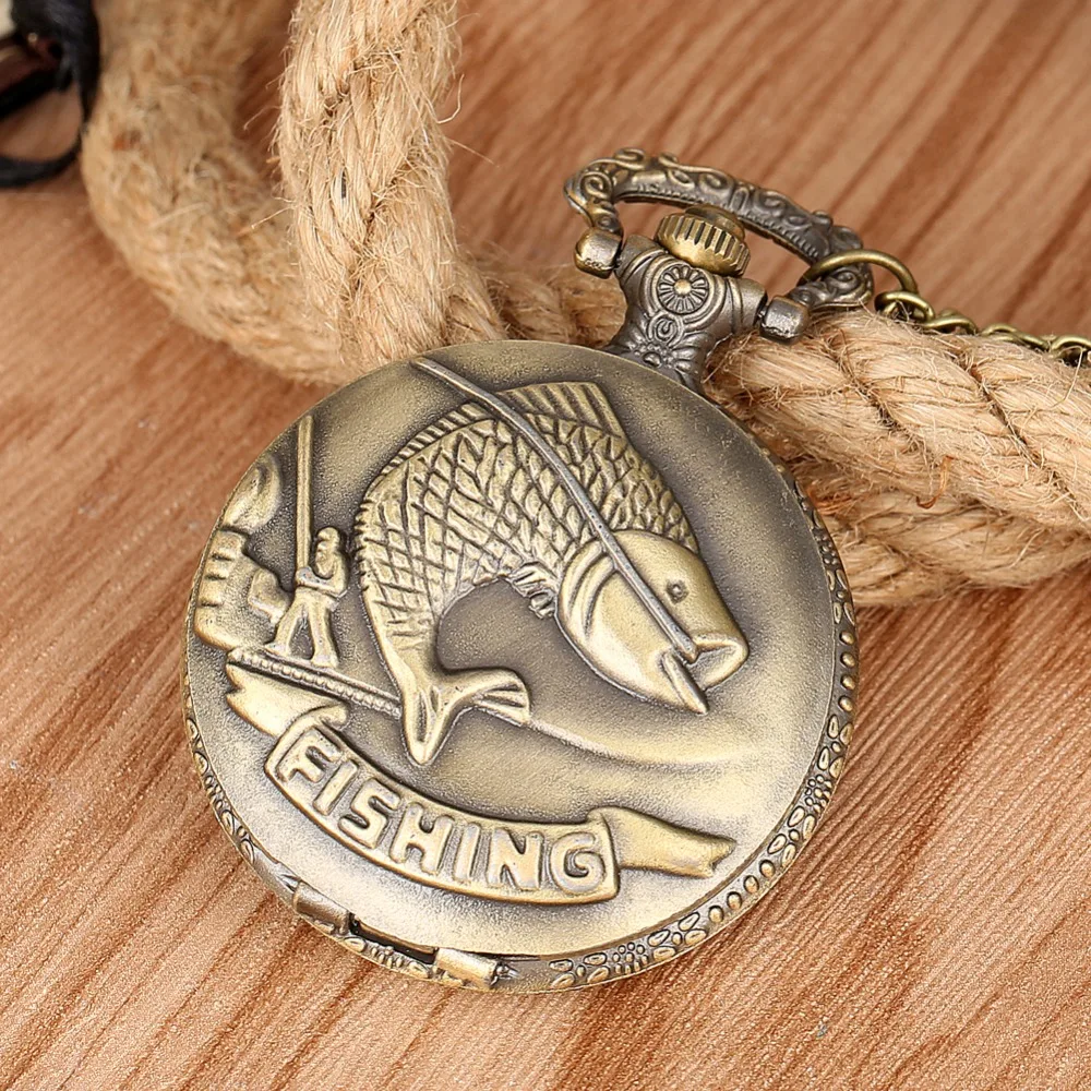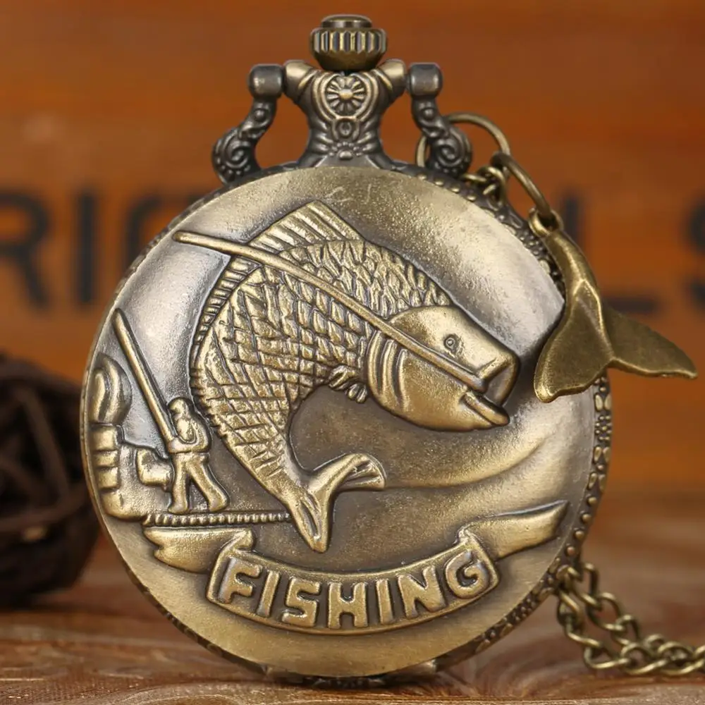 Часы с рыбьими карманами, кварцевые винтажные часы для рыбалки, часы с подвеской и цепочкой для мужчин и женщин