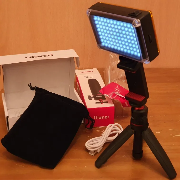Отличные поставка и держатель для смартфон с закрепляемой камерой. Лампа очень яркая на максимальной мощности, фильтры помогают смягчить свет. Комплектом очень доволен, пришло за 3 дня.