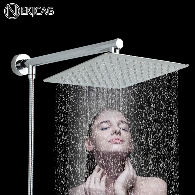 Полированная хромированная ультратонкая квадратная Душевая насадка 8 "10" 12 "38 см Душевая насадка 150 см душевой шланг Замена душа ванной