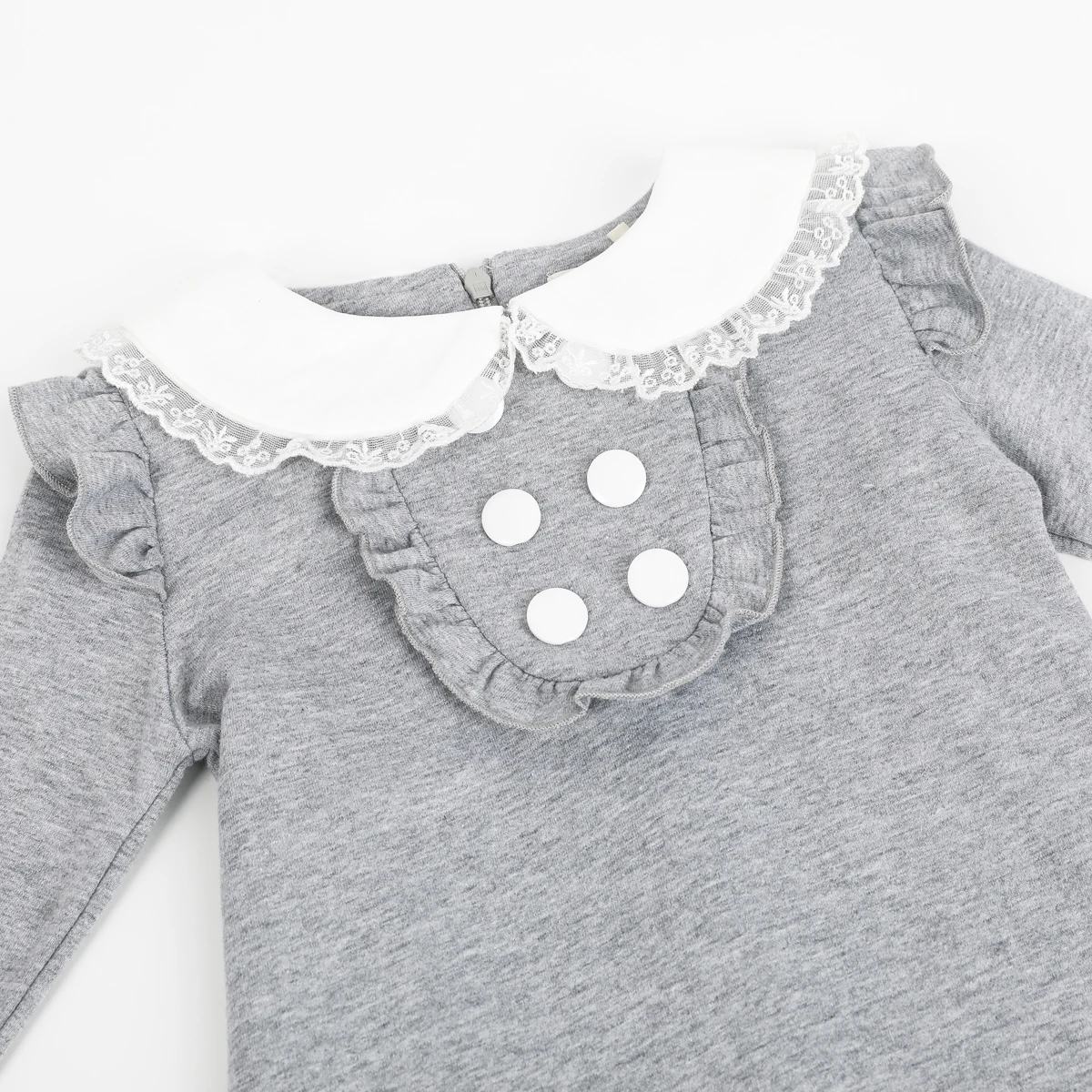 Новое поступление весенне-осенней коллекции 2021 года, хлопковая одежда в Корейском стиле для девочек, повседневное ТРАПЕЦИЕВИДНОЕ мини-платье для девочек с кукольным воротником и длинными рукавами, детская одежда