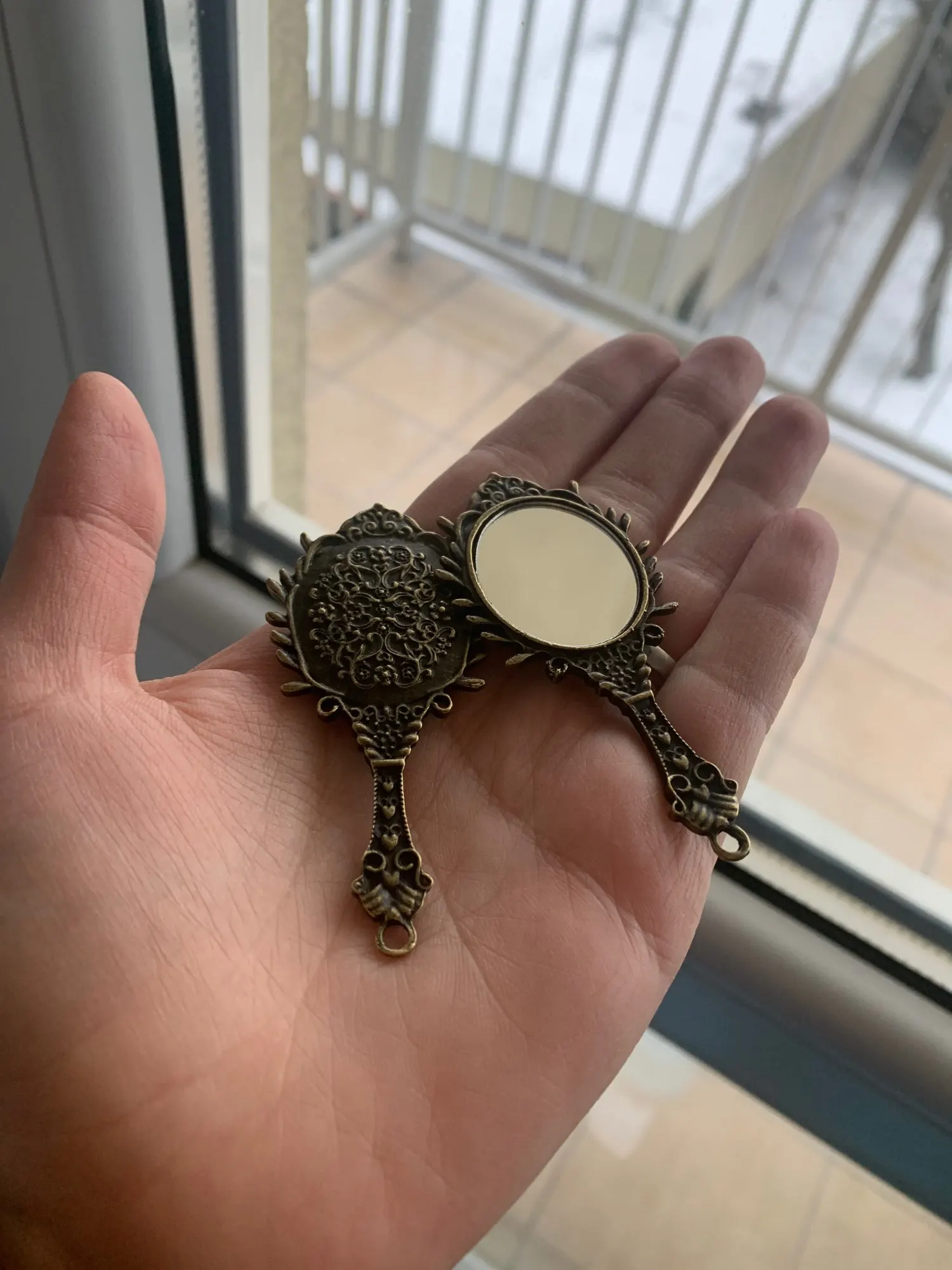 Материал: цинковый сплавЦвет: античная бронзаРазмер: 68x35 мм, зеркало: 23 мм