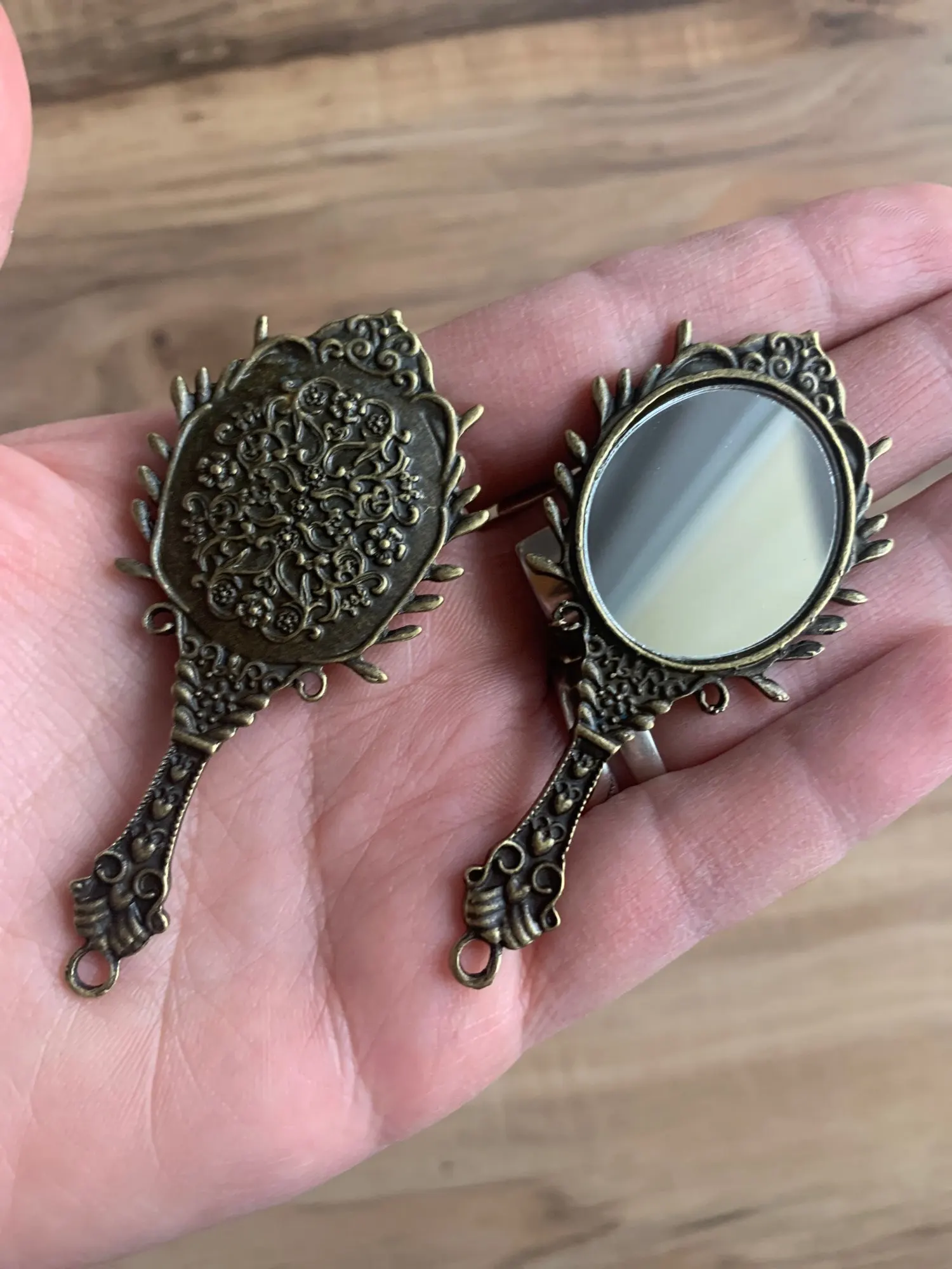 Материал: цинковый сплавЦвет: античная бронзаРазмер: 62x30 мм, зеркало: 23 ммБолее подробное описание:Зеркало представляет собой настоящее зеркальное стекло с липкой фазой пластика и сплава, липкий край есть зазор, очень привередливая сестра, пожалуйста, не покупайте.