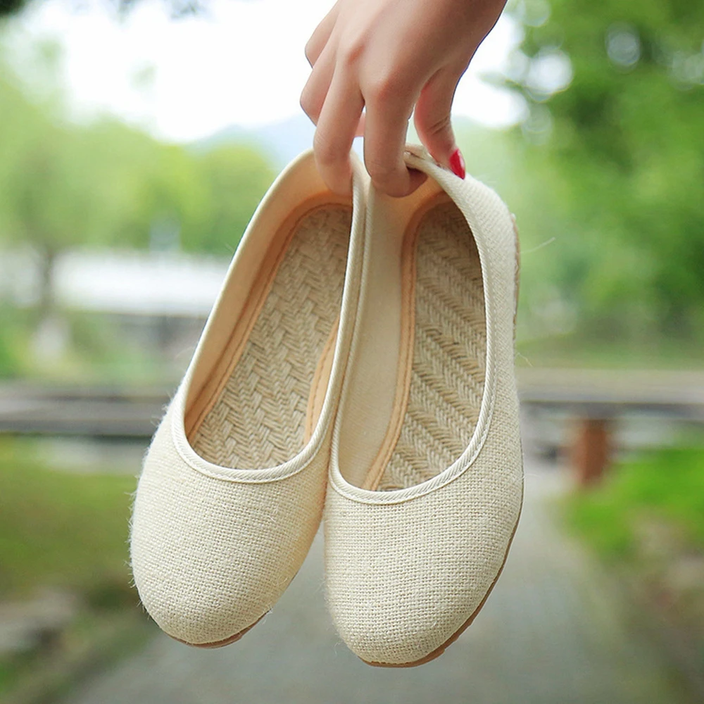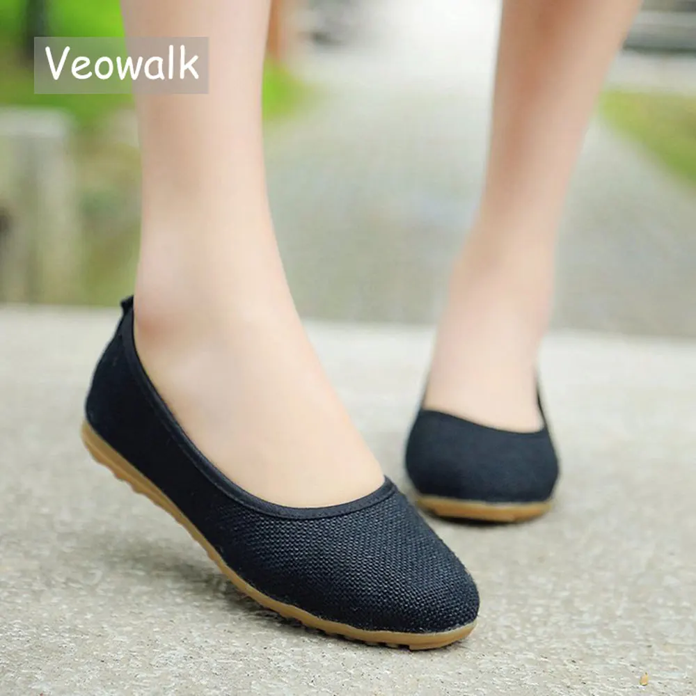 VeowalkЖенские повседневные хлопковые балетки ручной работы в стиле ретро; Женские мягкие удобные льняные слипоны в стиле старого Пекина; Обувь для учителей