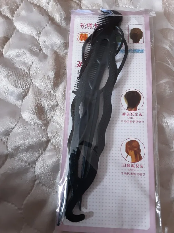 Соответствует описанию, но пластмасса очень тонкая и дешевая. Расческой пользоваться не возможно! Очень острые и неровные зубья , к тому же гнётся. Штука для создания бублика из волос тоже низкого качества. Проволока внутри короче .