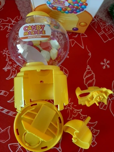 Пришло целое, покупала для работы, конфетки m&m's бывает застревают, но не страшно. Как копилка очень плохо, так как отдел с конфетами и отдел с монетами не разделён деньги могут высыпаться или же застревать из-за вращающегося механизма, но мне и не нужнв была копилка