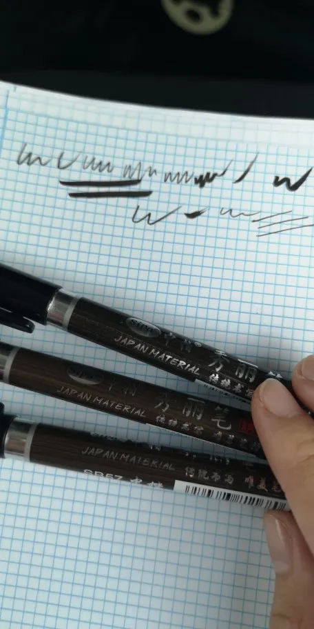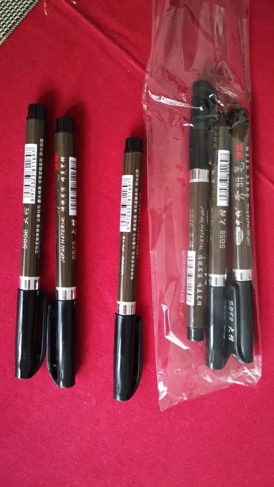 Истина в том, что для первого теста на надпись он работает очень хорошо. Номера SB56 и 57 имеют жесткий наконечник, а SB58 является гибким. Ход жидкости и чернила хорошие, они не образуют патчи при написании в обычном Фолио 80 г, и не переносятся.