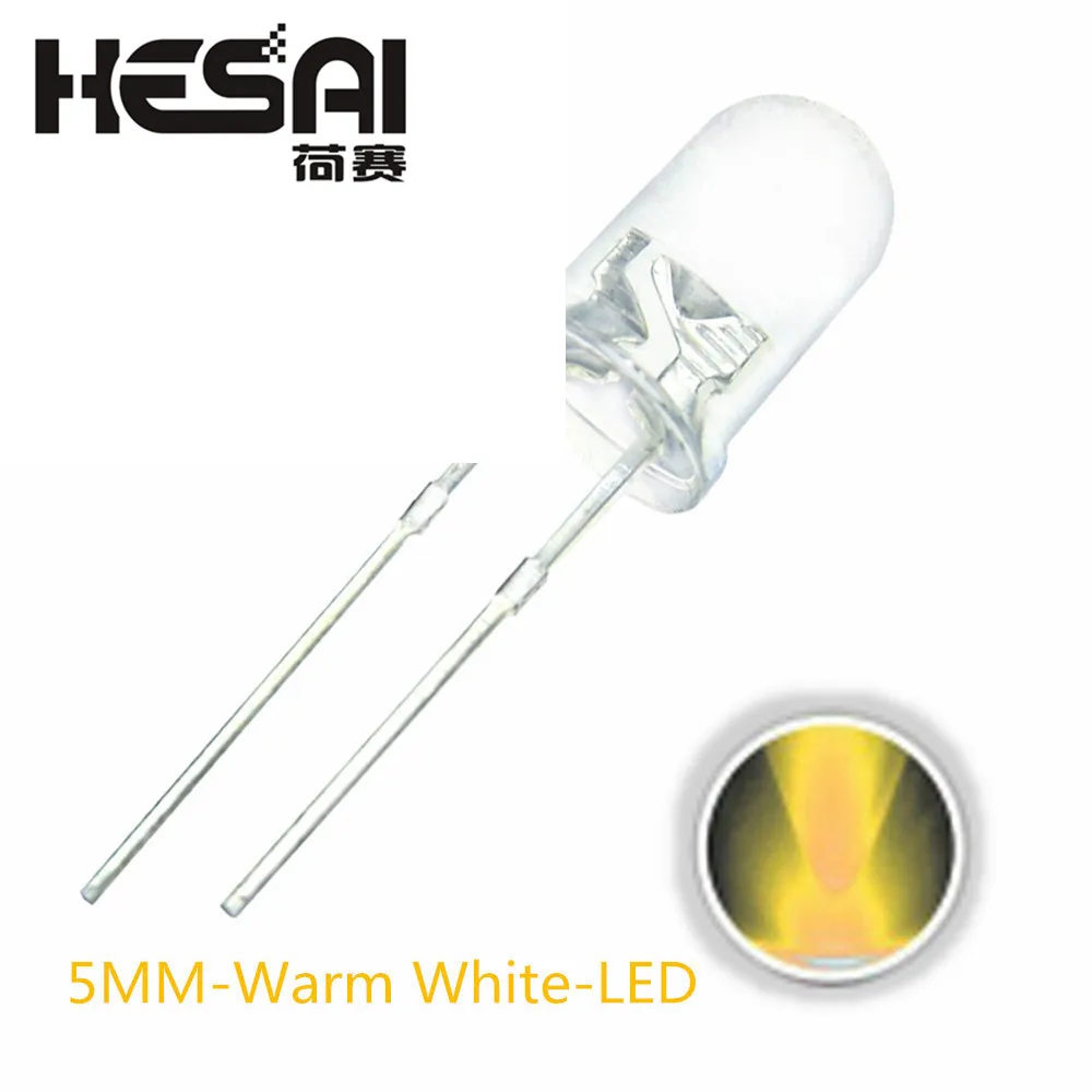 100 шт./лот 5 мм круглый теплый белый Ультра-яркий светодиод