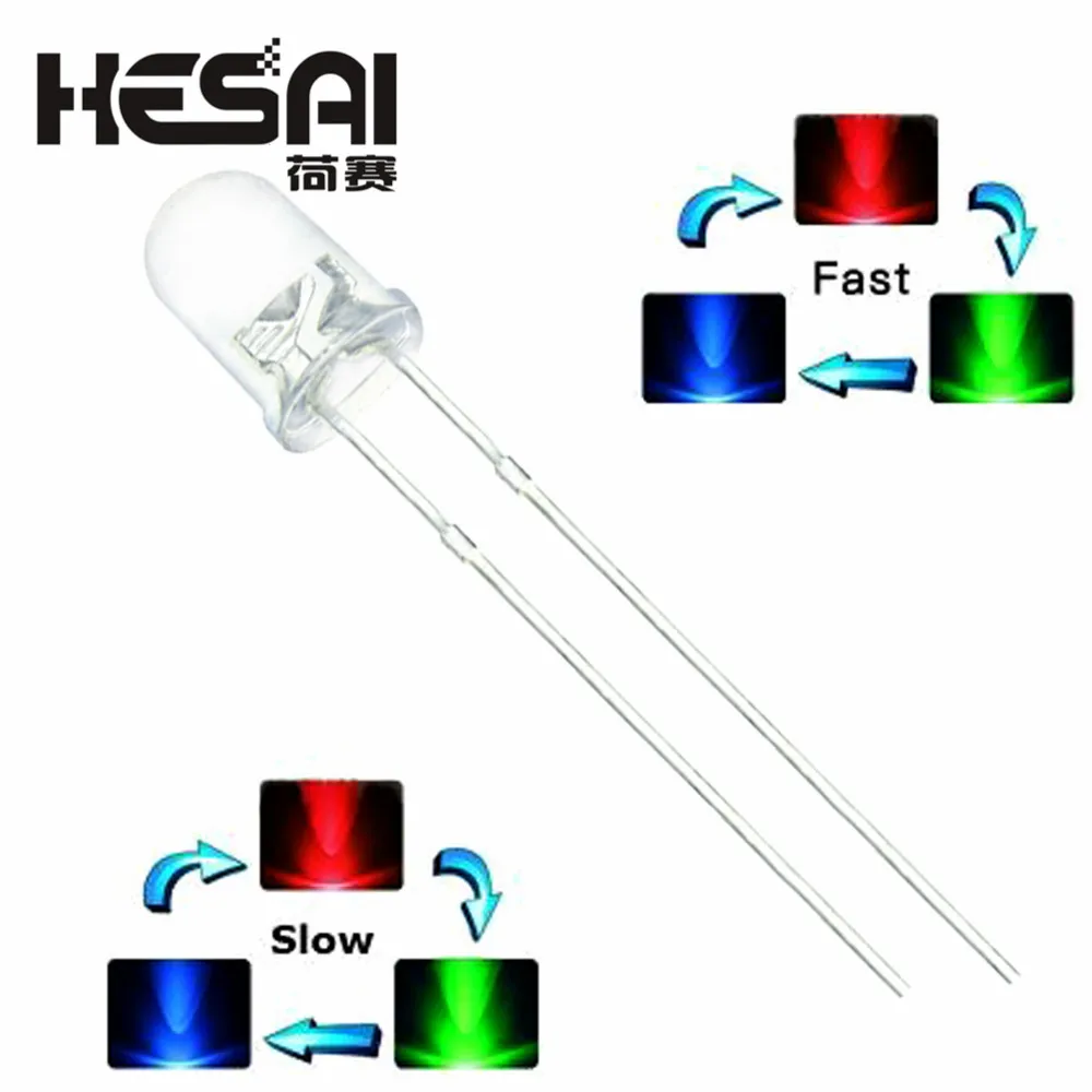 100 шт.лот F3 3 мм быстраямедленная вспышка RGB красный зеленый синий Радужный разноцветный светоизлучающий диод Круглый полноцветный светодиодный