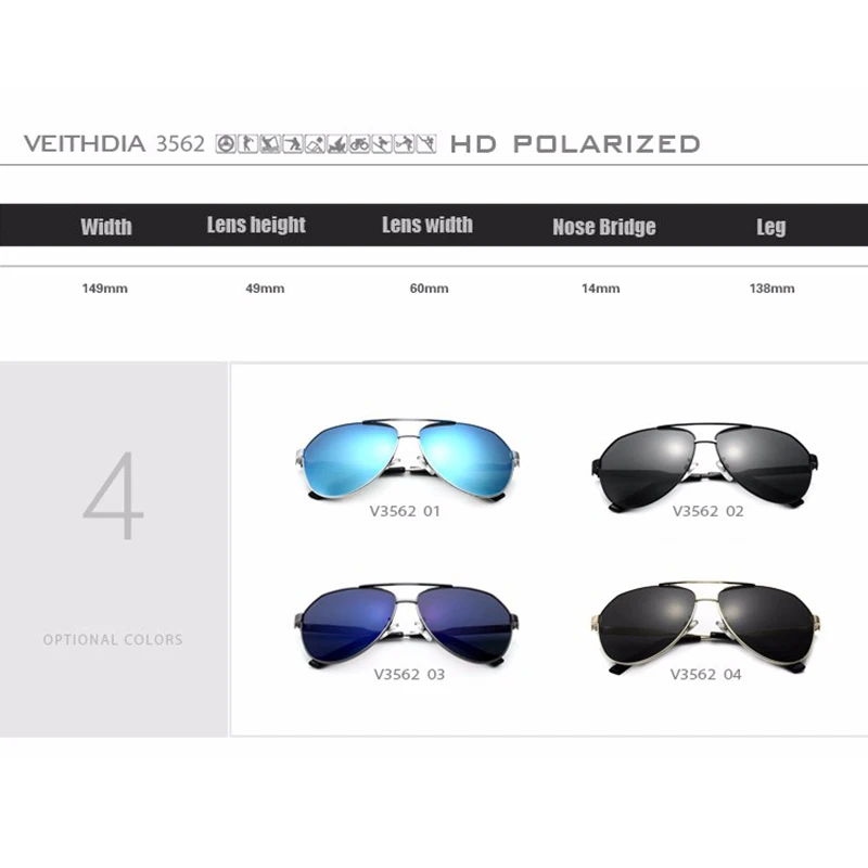 Солнцезащитные очки VEITHDIA, алюминиевые мужские поляризованные UV...