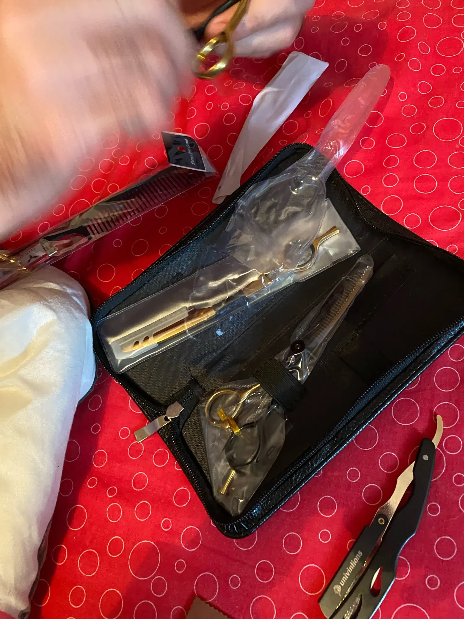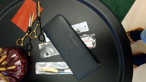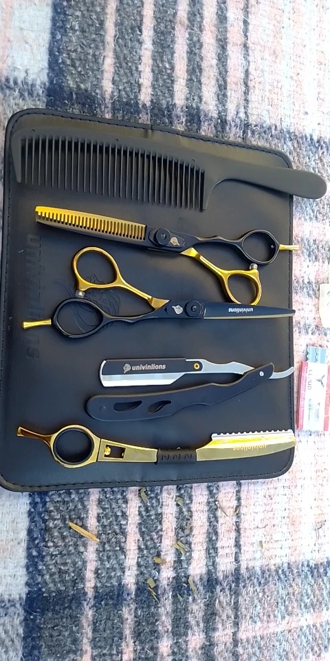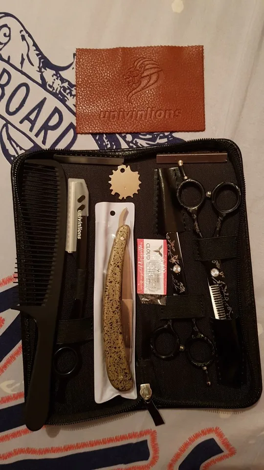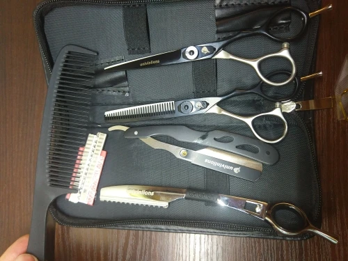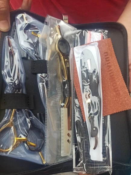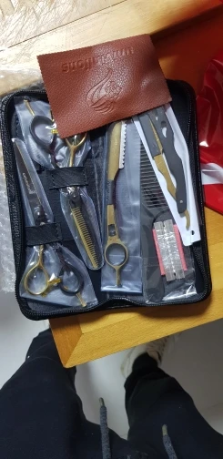 Качество продукции эффектное, приятно на ощупь. 20 евро за 2 ножниц, две бритвы и бритвы с чехлом-это удар, я парикмахер, и я буду рекомендовать его всем. Я ставлю в них спор, потому что они сделали долгое время, но время заслужило ожидание большое спасибо