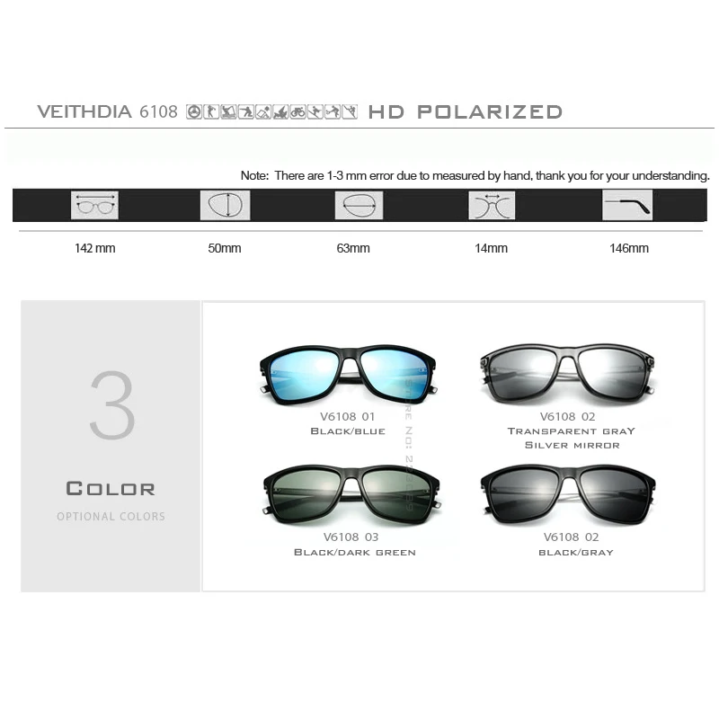 Солнцезащитные очки унисекс VEITHDIA, винтажные, с поляризационными стеклами, степень защиты UV400, спортивные, 6108