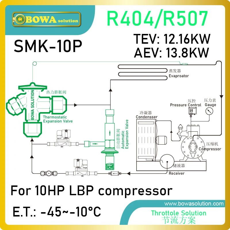 Комплекты дроссельных клапанов 10HP, R404 могут работать отдельно при-45 'хорошо, не требуют дополнительных клапанов как EEV (электронные расширительные клапаны)
