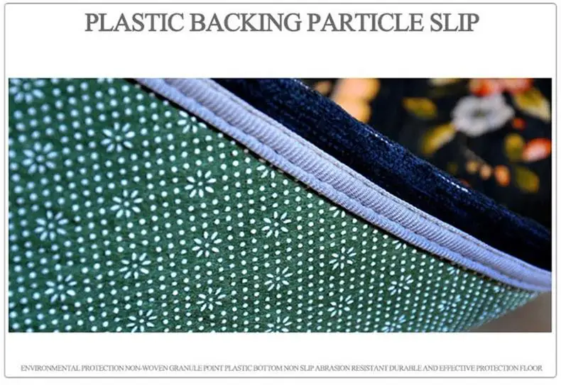 Технология ковра: нетканый коврик + частицы скольжения. Хорошая стойкость к истиранию. Не носите на деревянных полах. Так как дно-это противоскользящие частицы, поэтому все, что находится в деревянных полах, мраморе, плитке и других местах, не будет скользить.