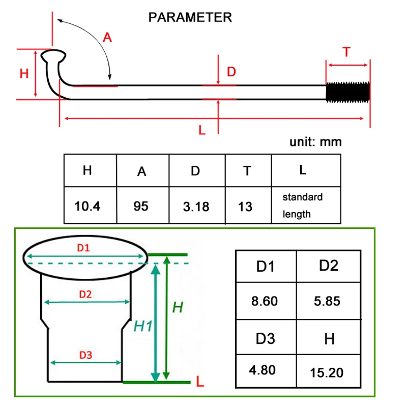 1. Каждая спица сделана по индивидуальному заказу, она не может быть возвращена, пожалуйста, убедитесь, что длина спицы, прежде чем сделать заказ!