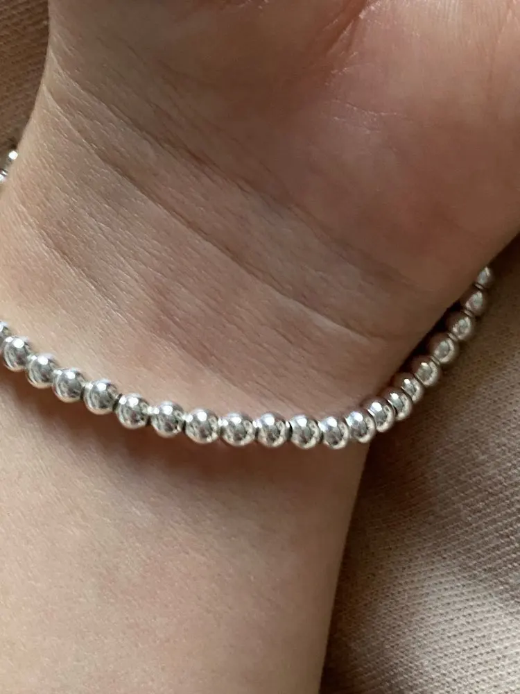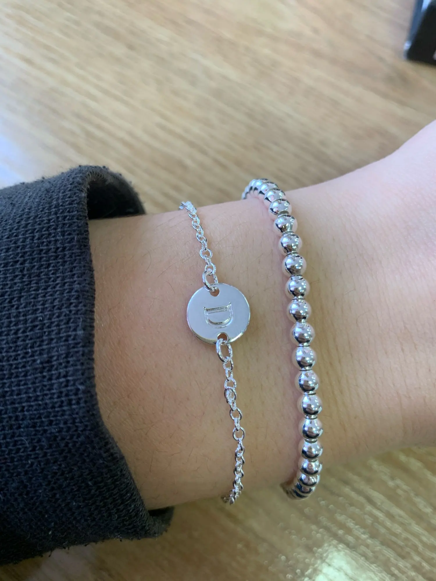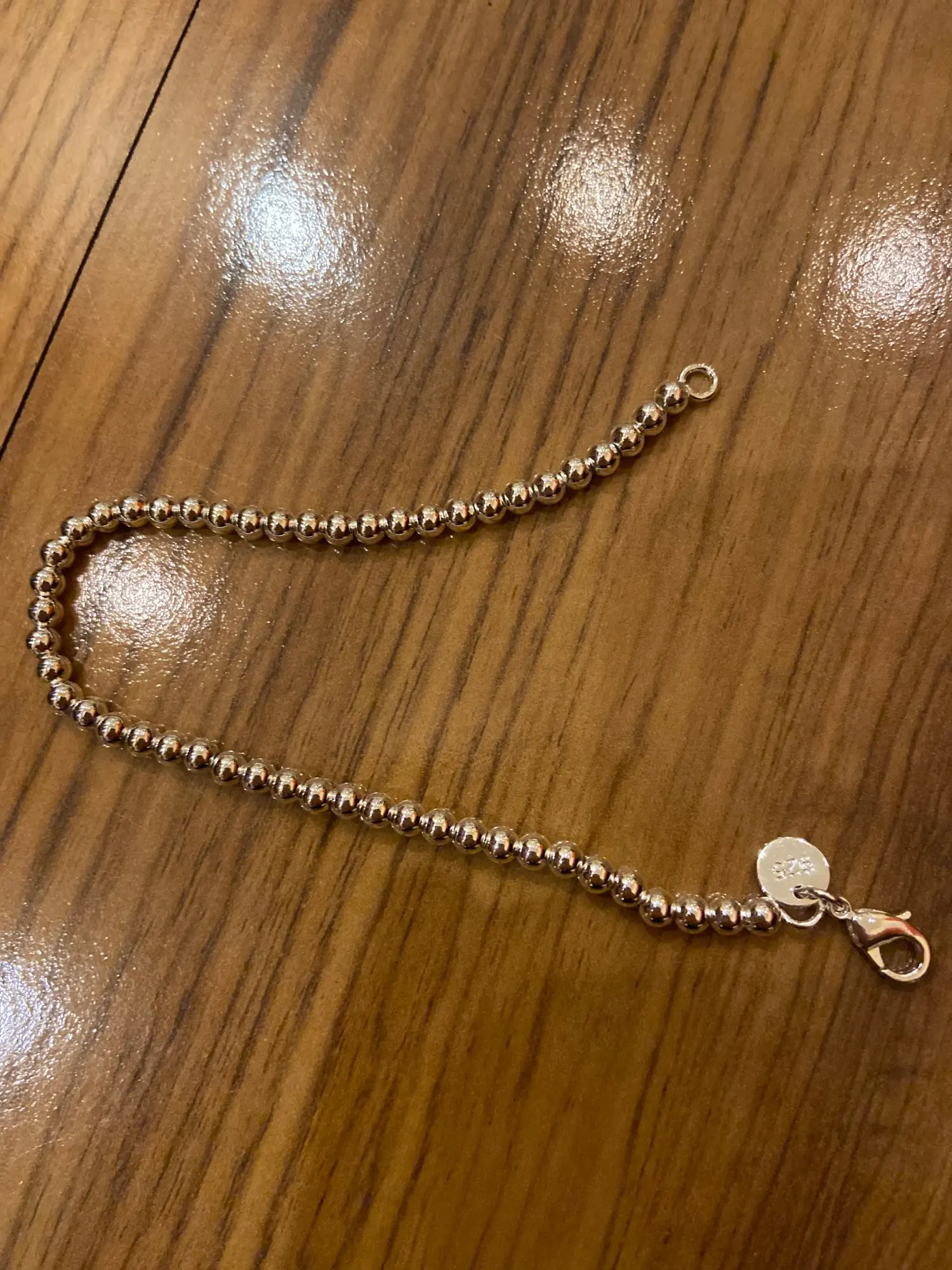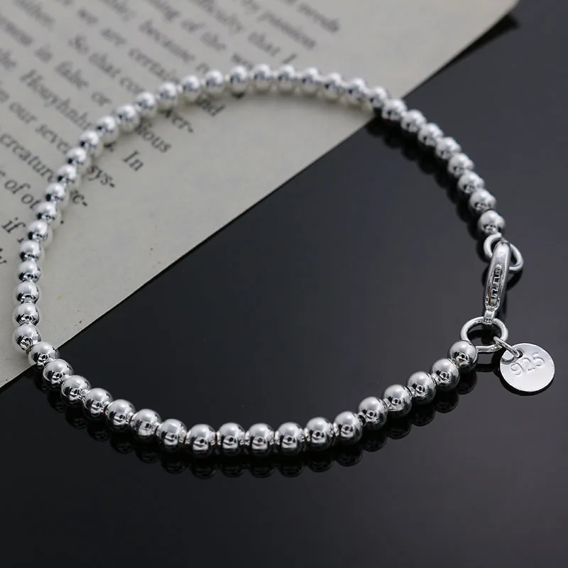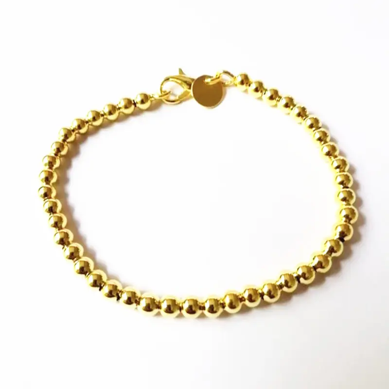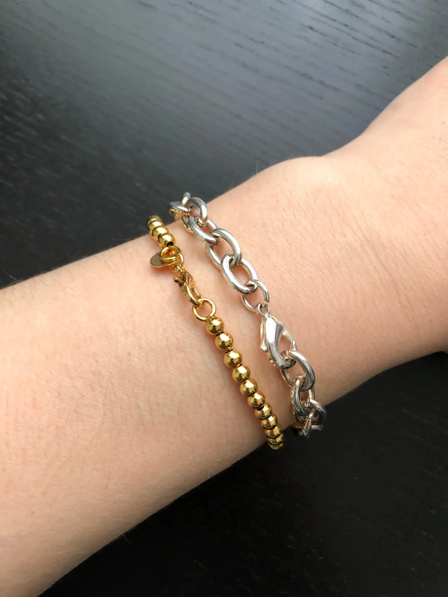 Женский браслет с бусинами 4 мм, цепочка золотого и серебряного цвета с надписью, H198