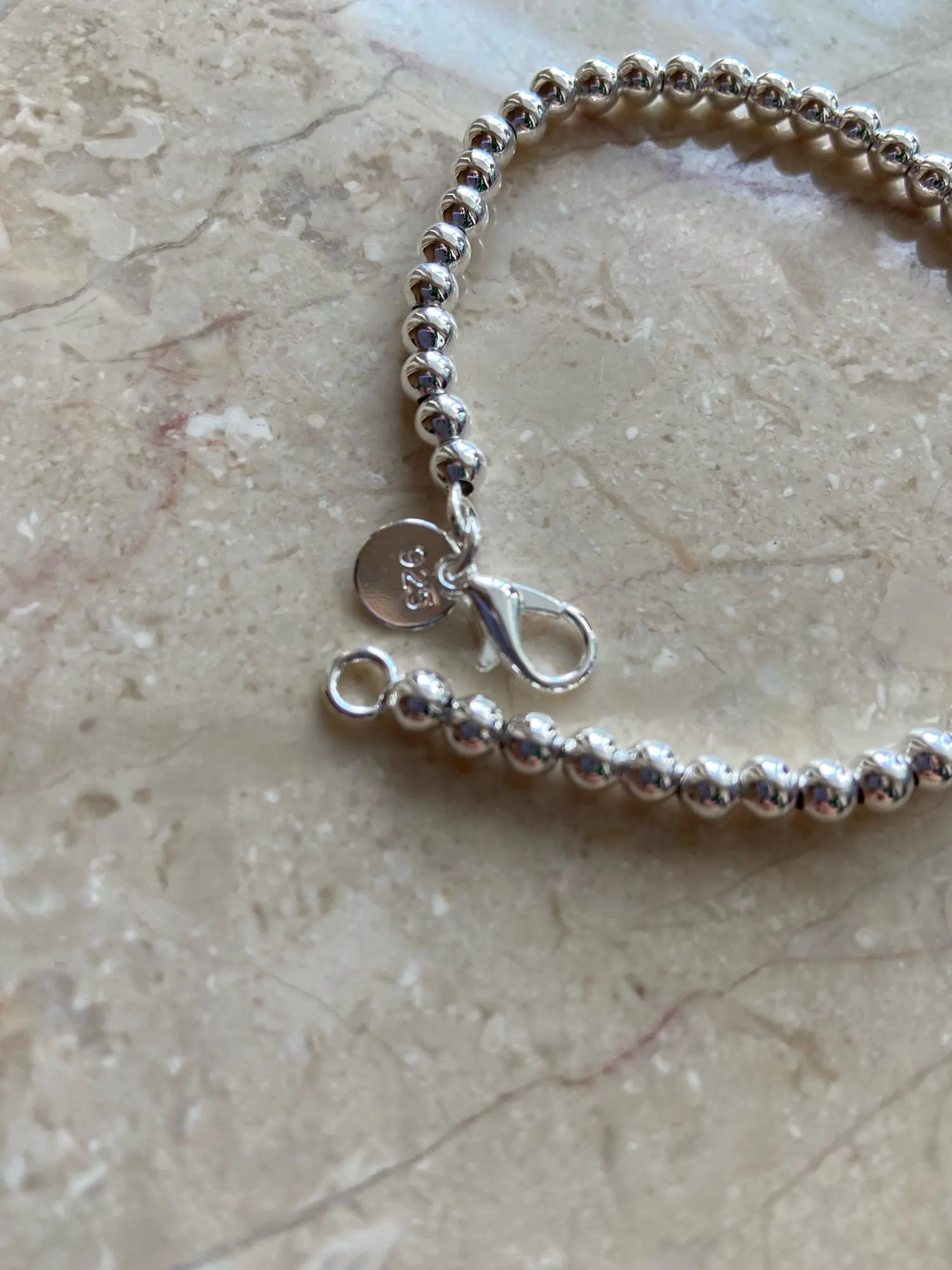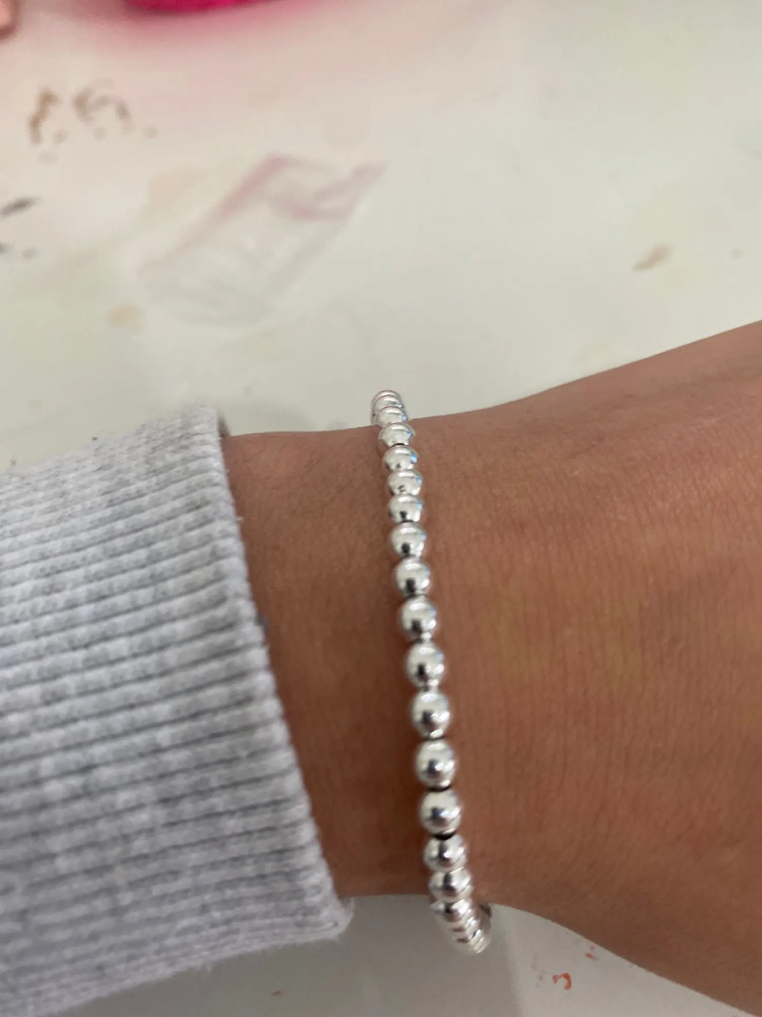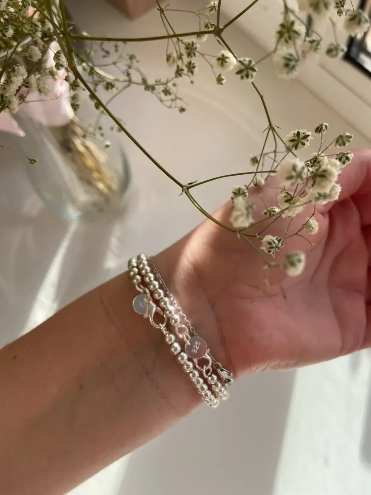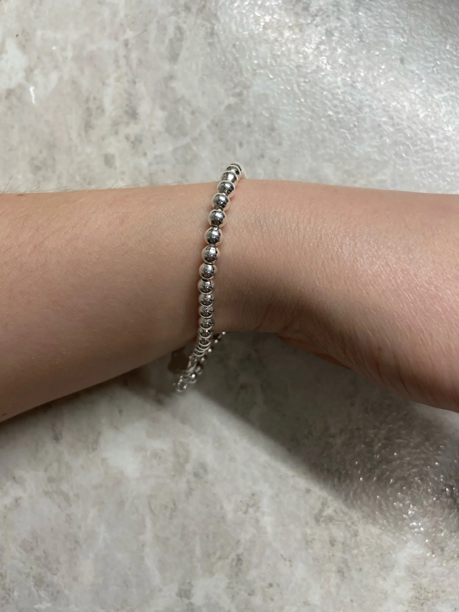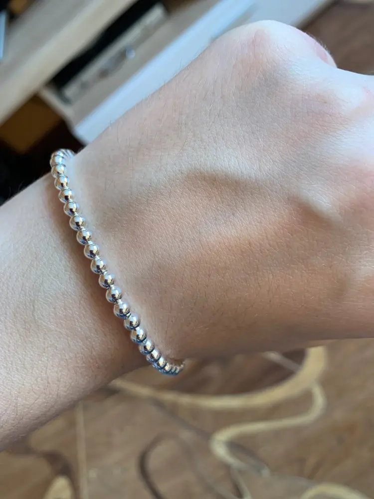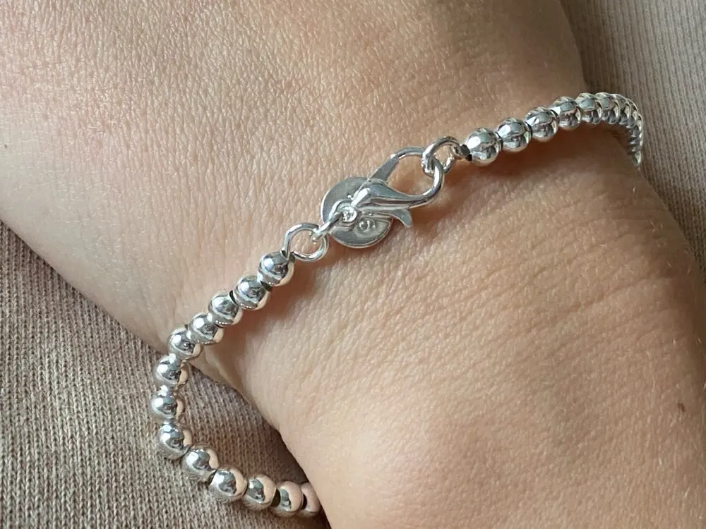 Женский браслет с бусинами 4 мм, цепочка золотого и серебряного цвета с надписью, H198